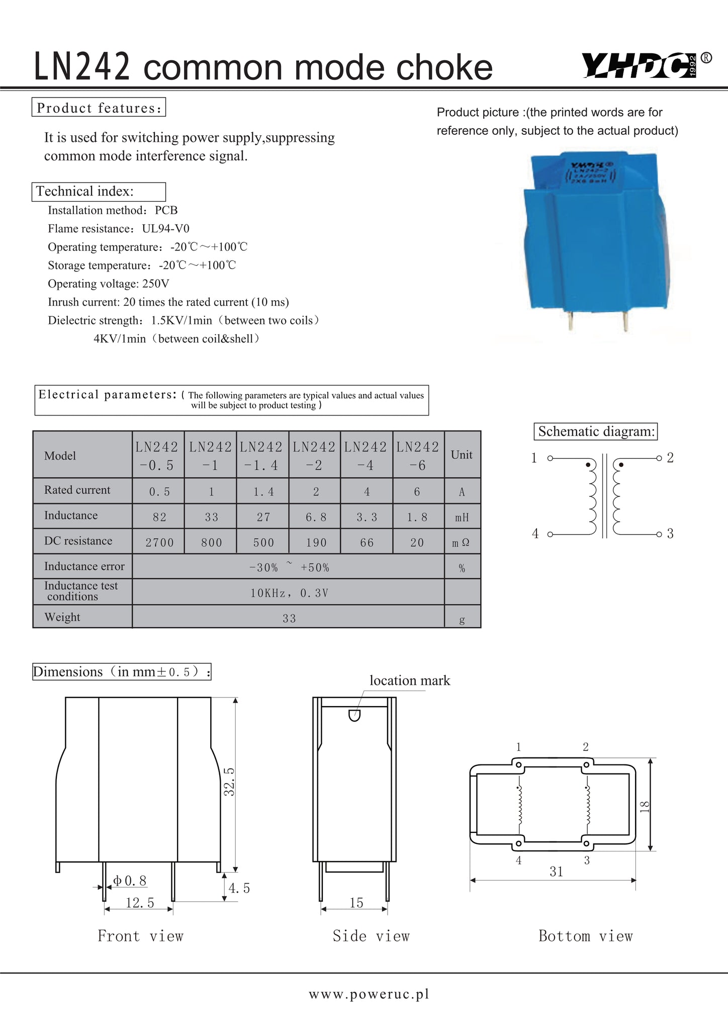 LN series common mode choke  LN242 Rated current 0.5~6A DC resistance 2700~20mΩ - PowerUC