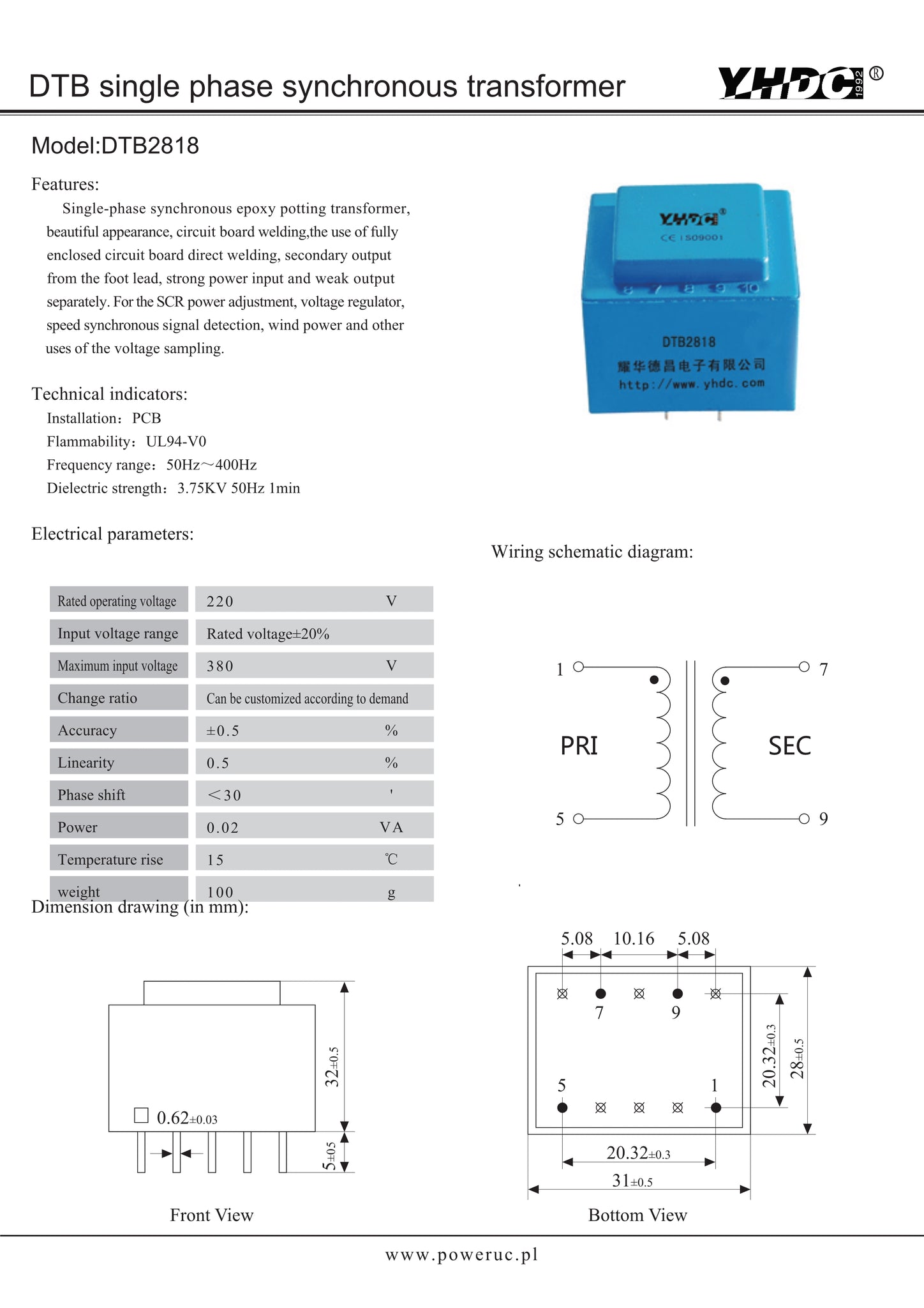 DTB single phase synchronous transformer DTB2818 0.02VA 220V