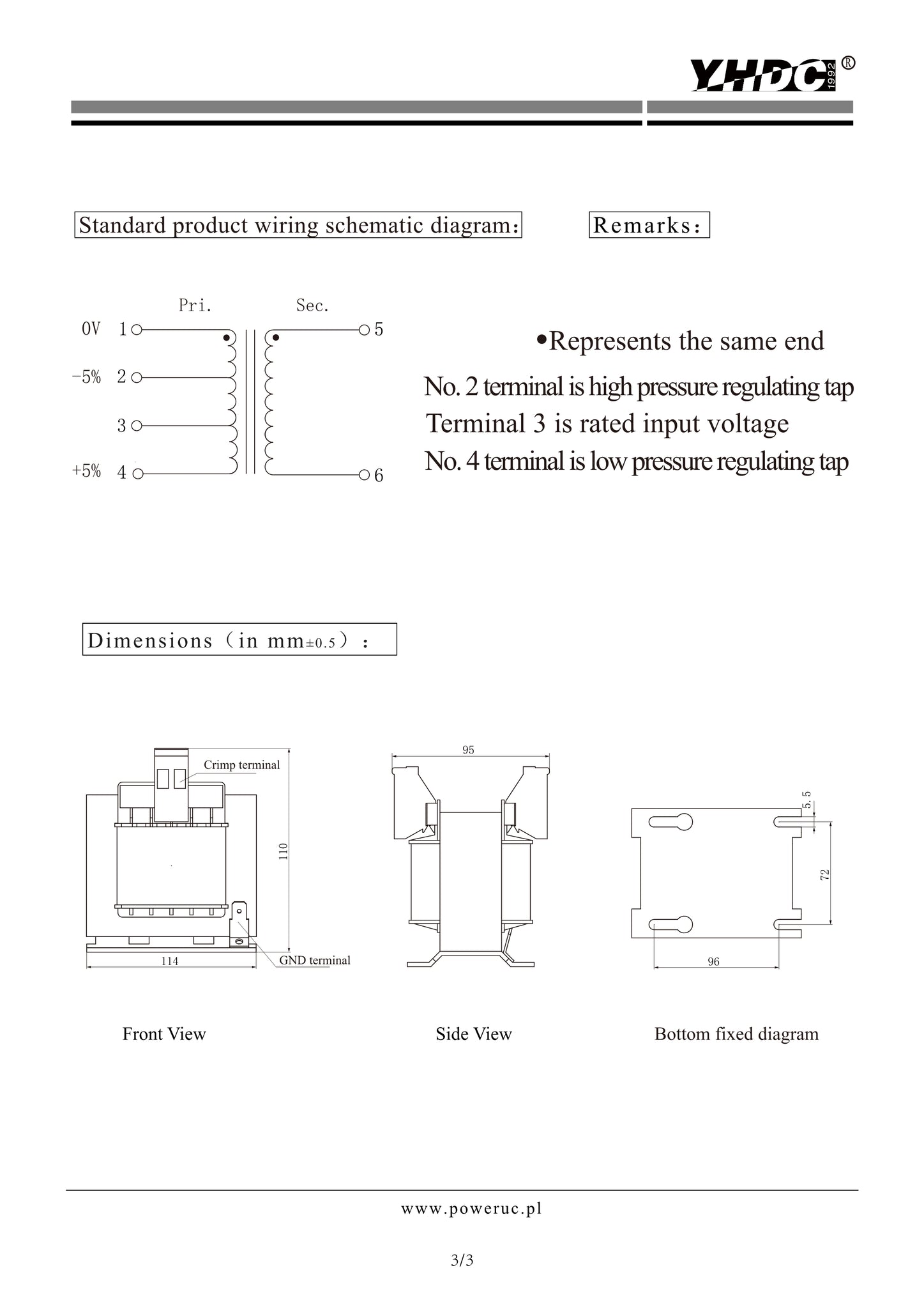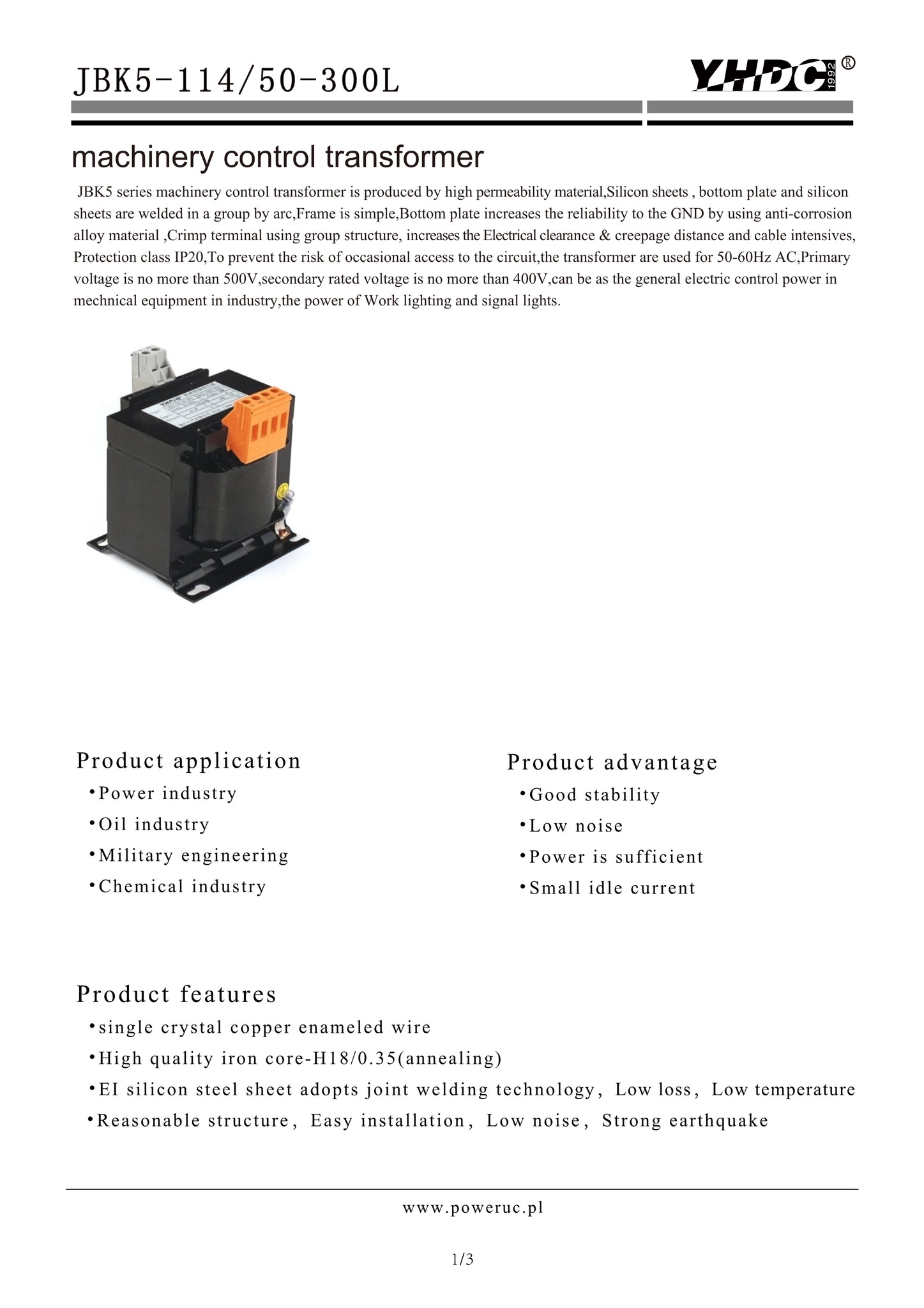 JBK5 series horizontal machinery control transformer is produced by high permeability material, silicon sheets, bottom plate and silicon sheets are welded in a group by arc, frame is simple, bottom plate increases the reliability to the GND by using anti-corrosion alloy material, crimp terminal using group structure, increases the electrical clearance & creepage distance and cable intensives, protection class IP20, to prevent the risk of occasional access to the circuit, the transformer are used for 50-60Hz AC, primary voltage is no more than 500V, secondary rated voltage is no more than 400V, can be as the general electric control power in mechanical equipment in industry, the power of work lighting and signal lights.