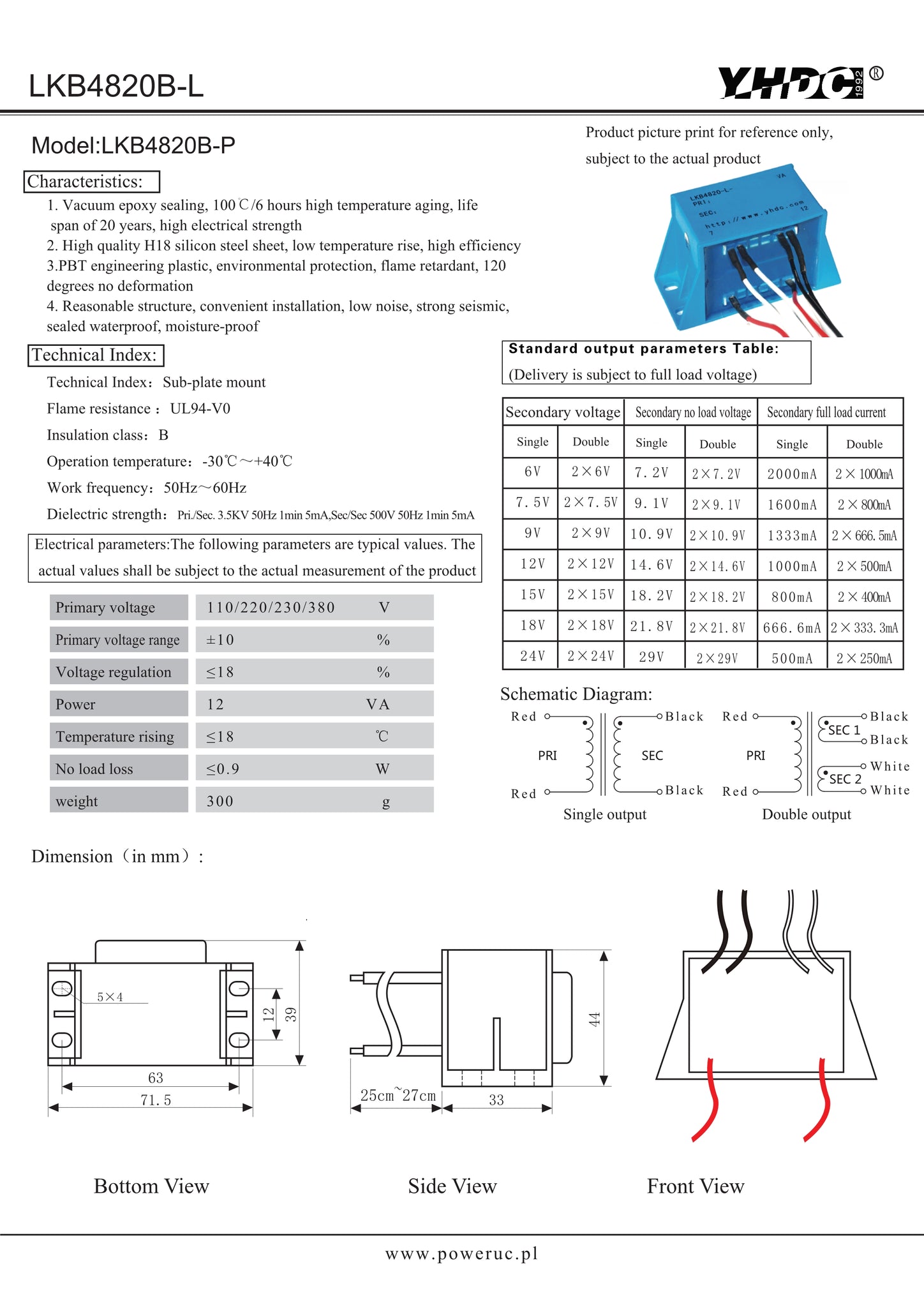 LKB series sub-plate mounting isolation transformer LKB4820B-L 110V/220V/230V/380V 12VA