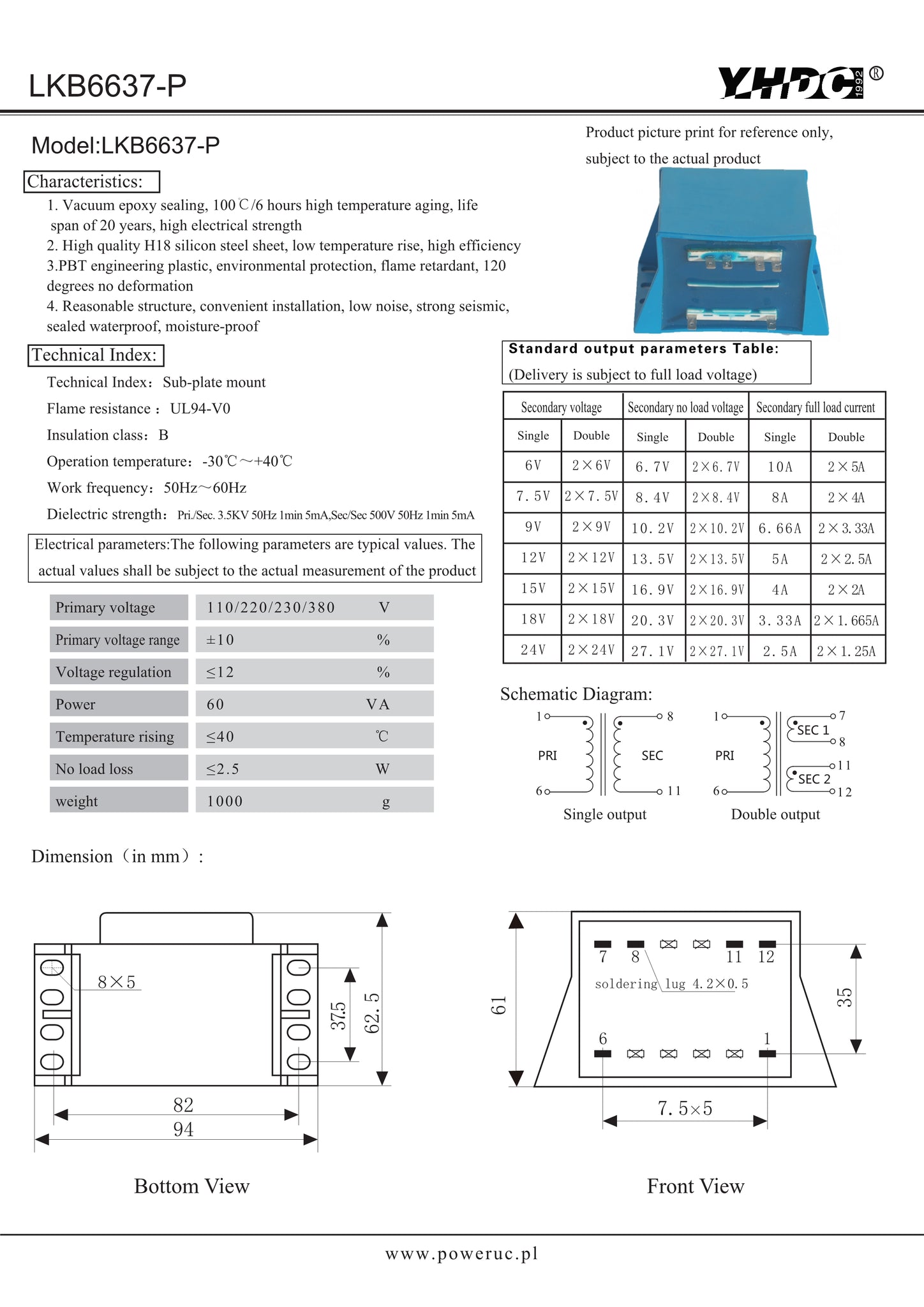 LKB series sub-plate mounting isolation transformer LKB6637-P 110V / 220V / 230V /380V 60VA