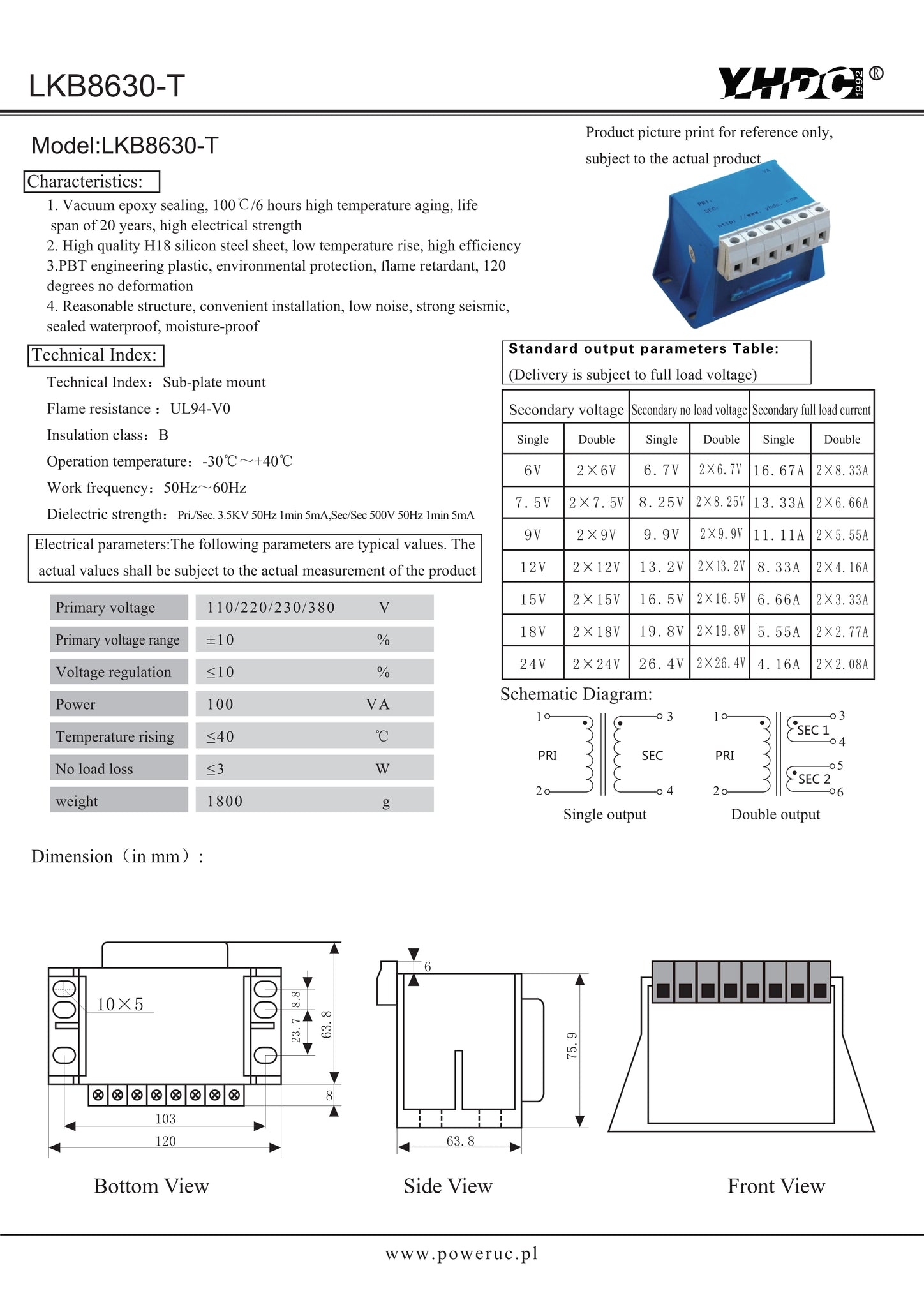LKB series sub-plate mounting isolation transformer LKB8630-T 110V/220V/230V/380V 100VA