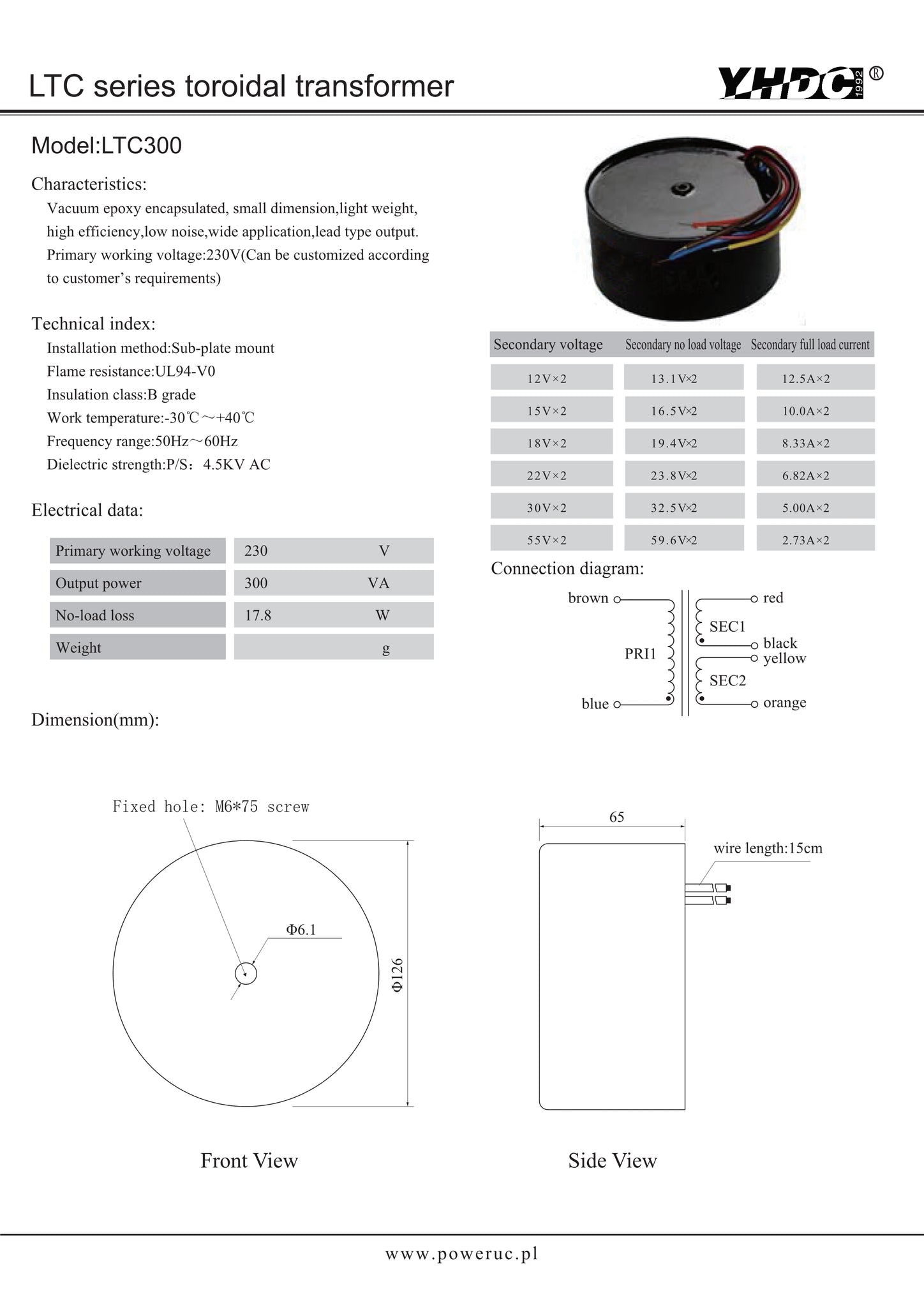LTC series toroidal transformer LTC300 300VA - PowerUC