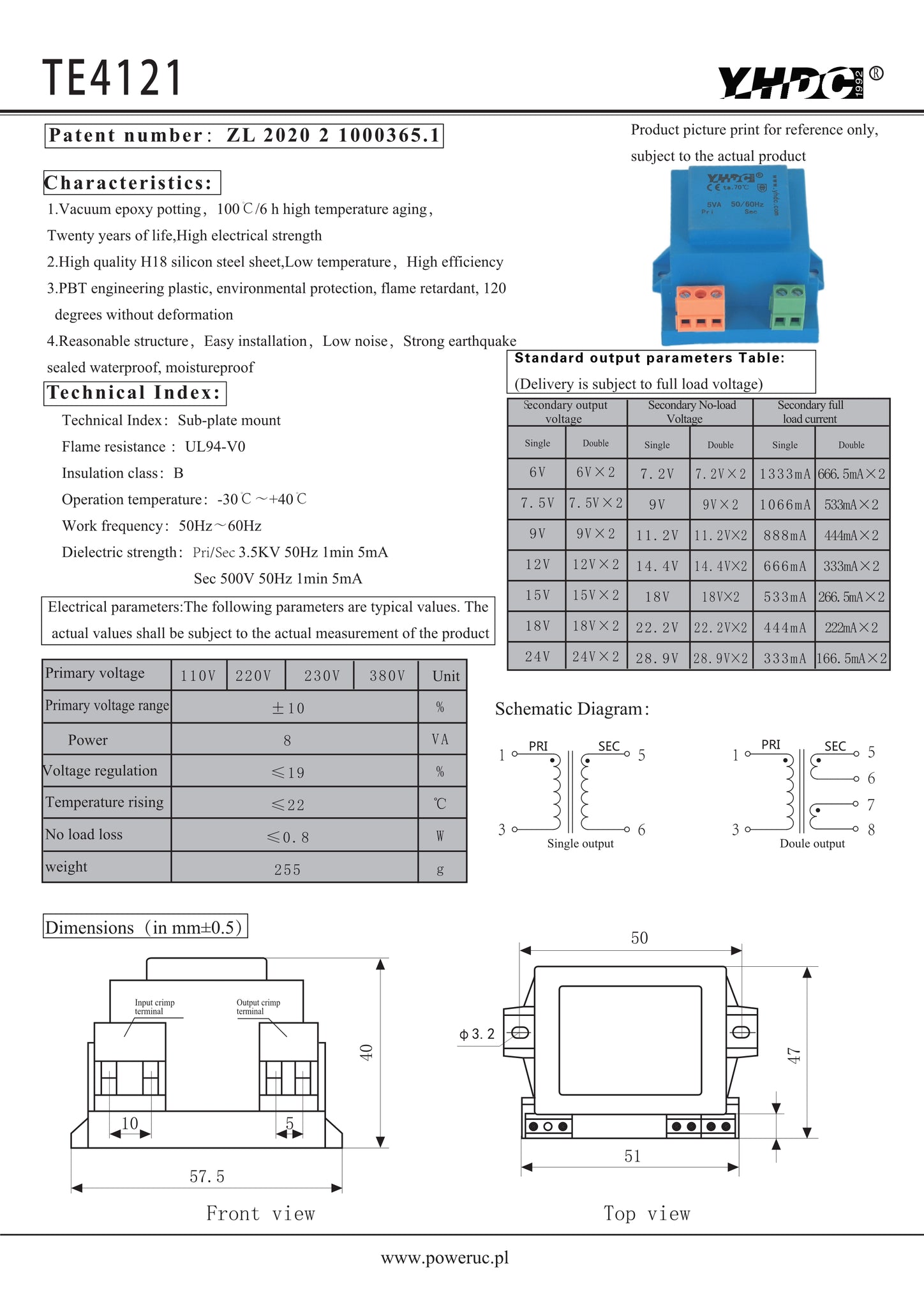Sub-plate mounting, vacuum epoxy encapsulated, crimping terminal output.