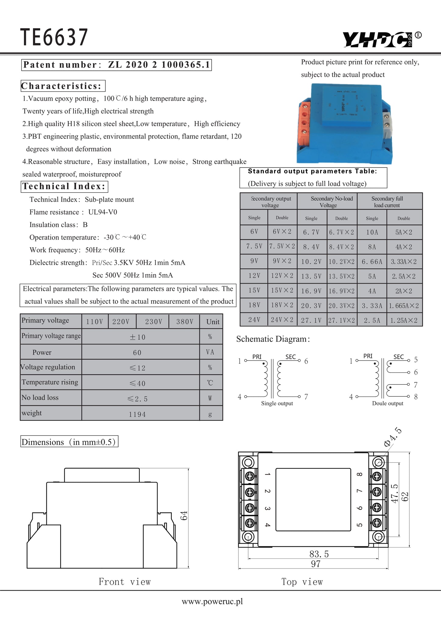 TE series isolation transformer TE6637 110V/220V/230V/380V 60VA