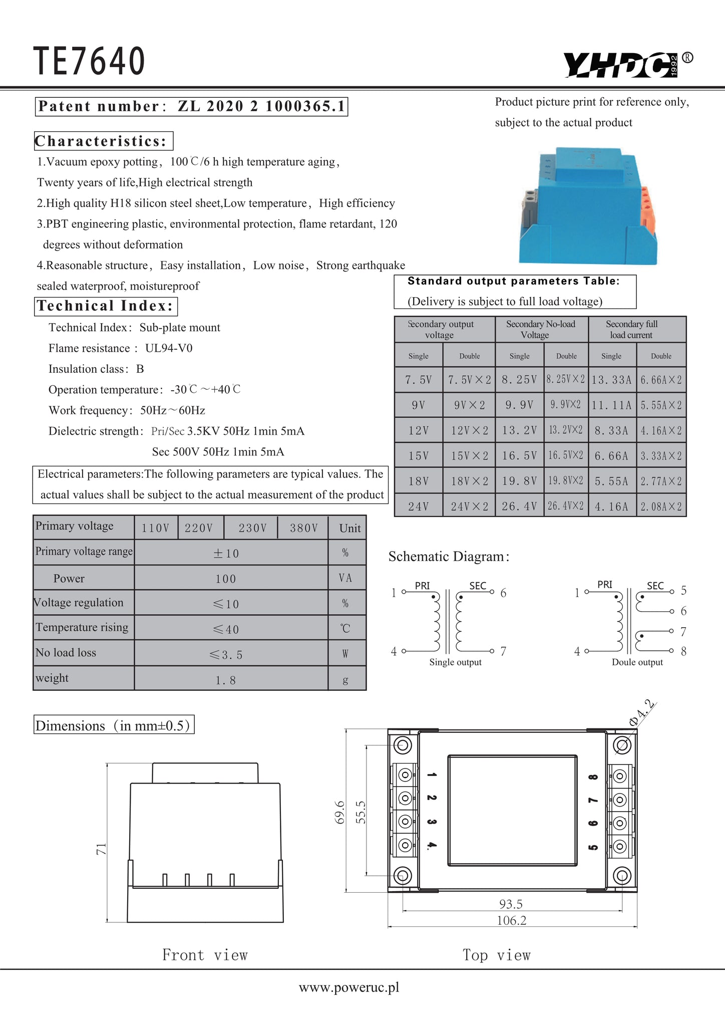 TE series isolation transformer TE7640 110V/220V/230V/380V 100VA