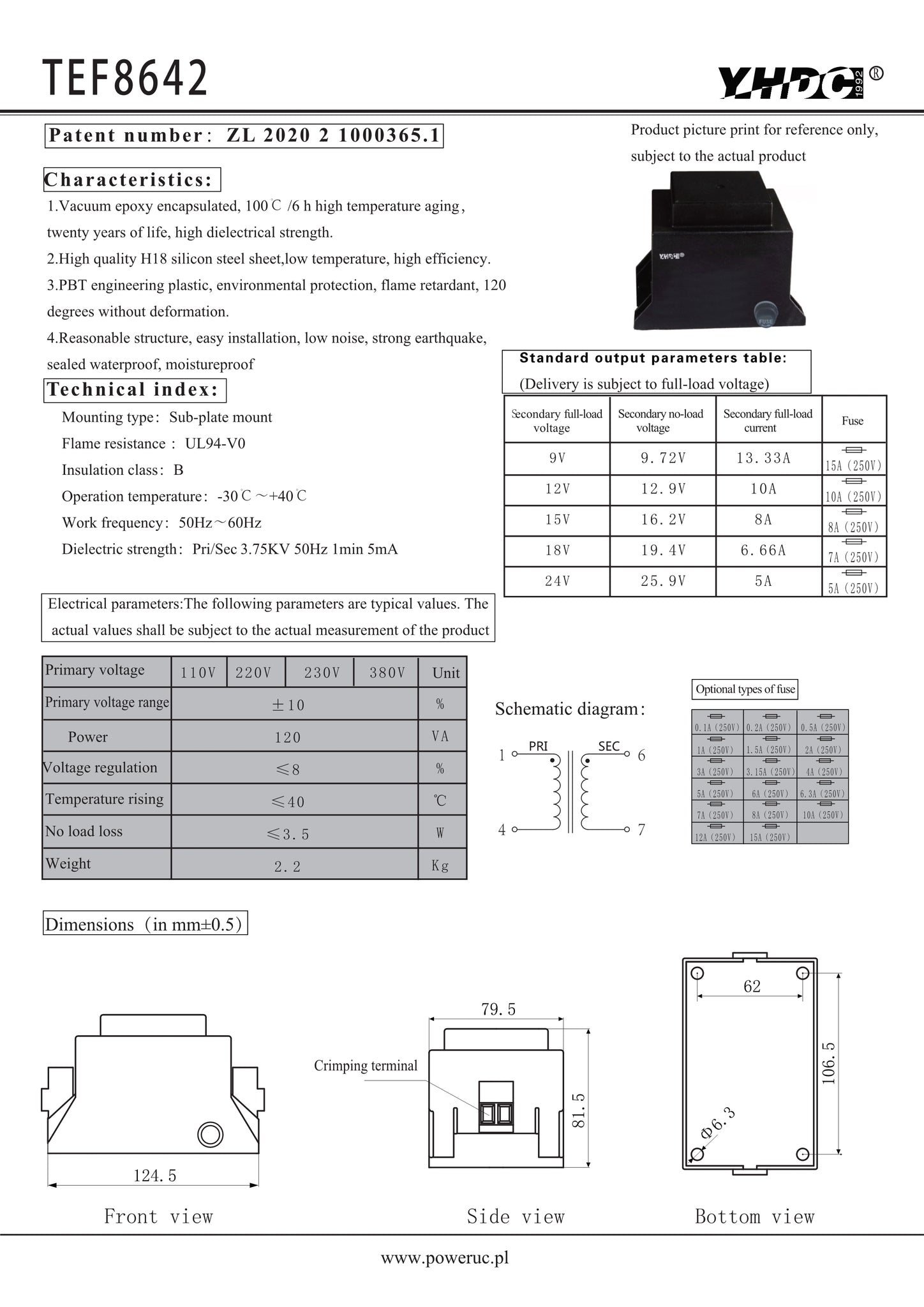 TE series isolation transformer TEF8642 110V/220V/230V/380V 120VA