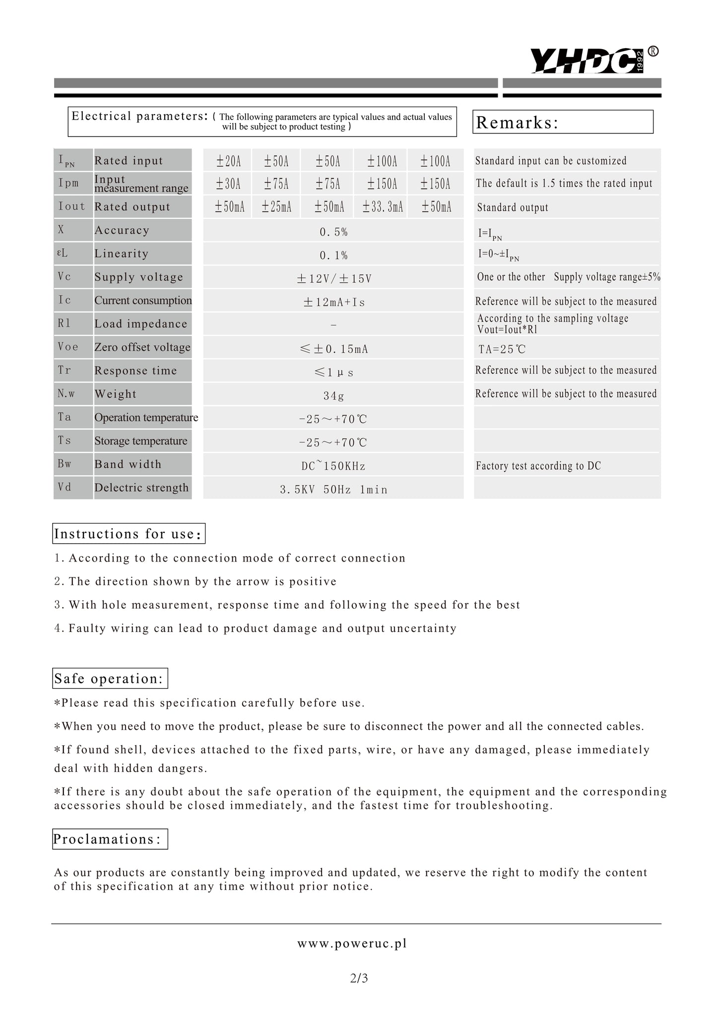 Split core current sensor HSTS016L Rated input ±10A ±20A ±30A ±50A ±100A ±150A ±200A Rated output 1.65V±0.625V/+3.3V And 2.5V±0.625V/+5V