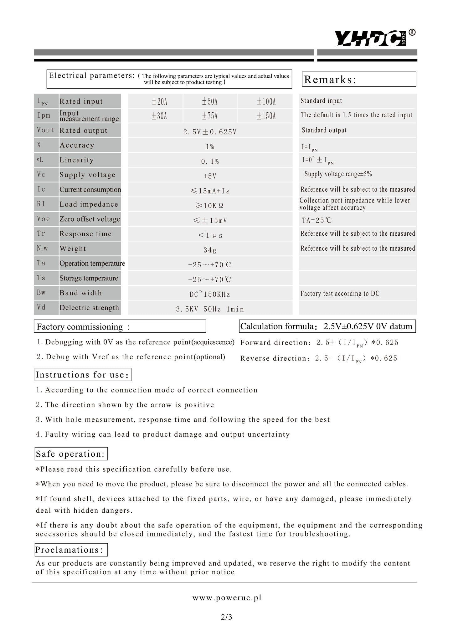 Hall closed loop current sensor HAS2009 Rated input ±20A ±50A ±100A Rated output 2.5V±0.625V - PowerUC