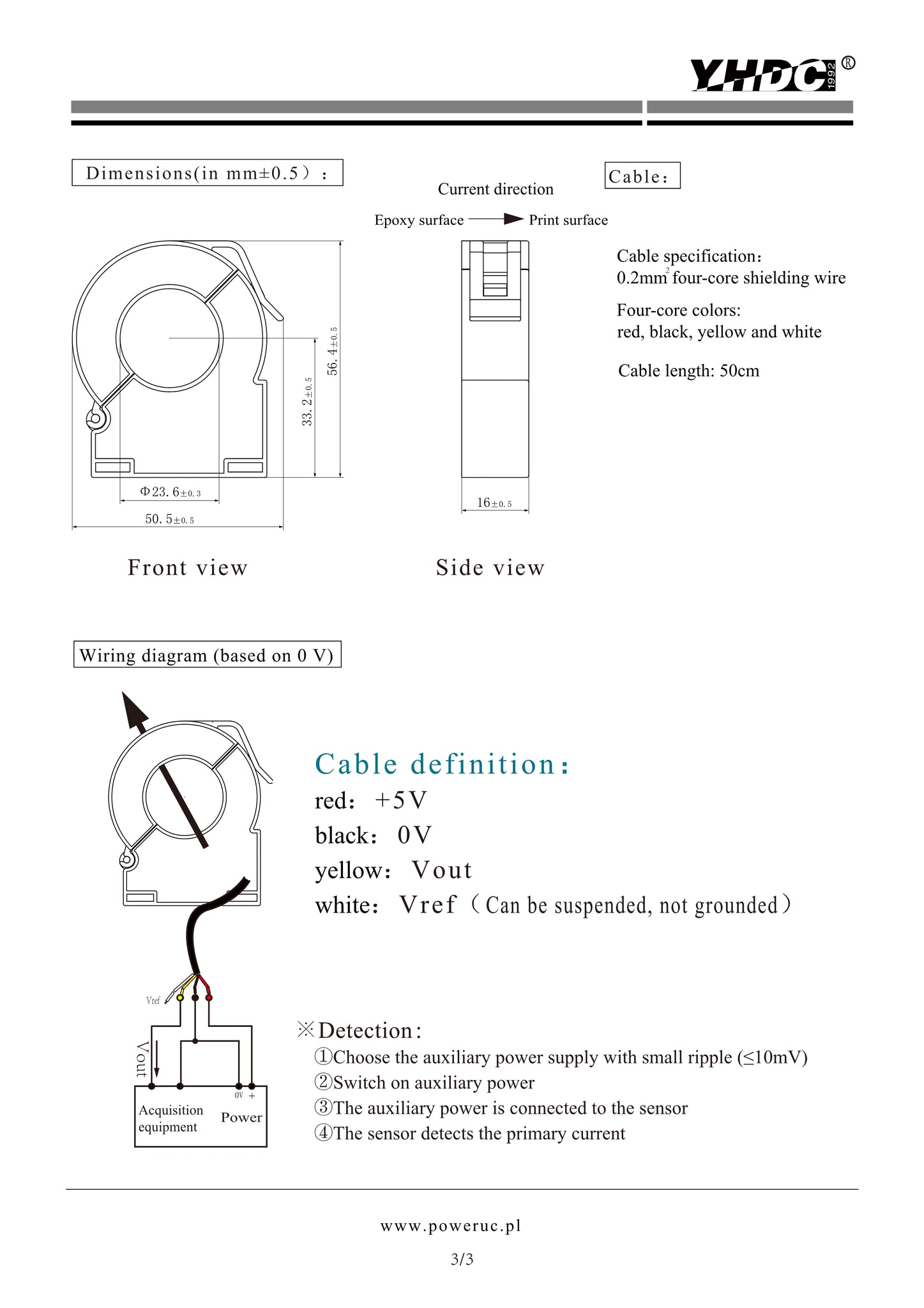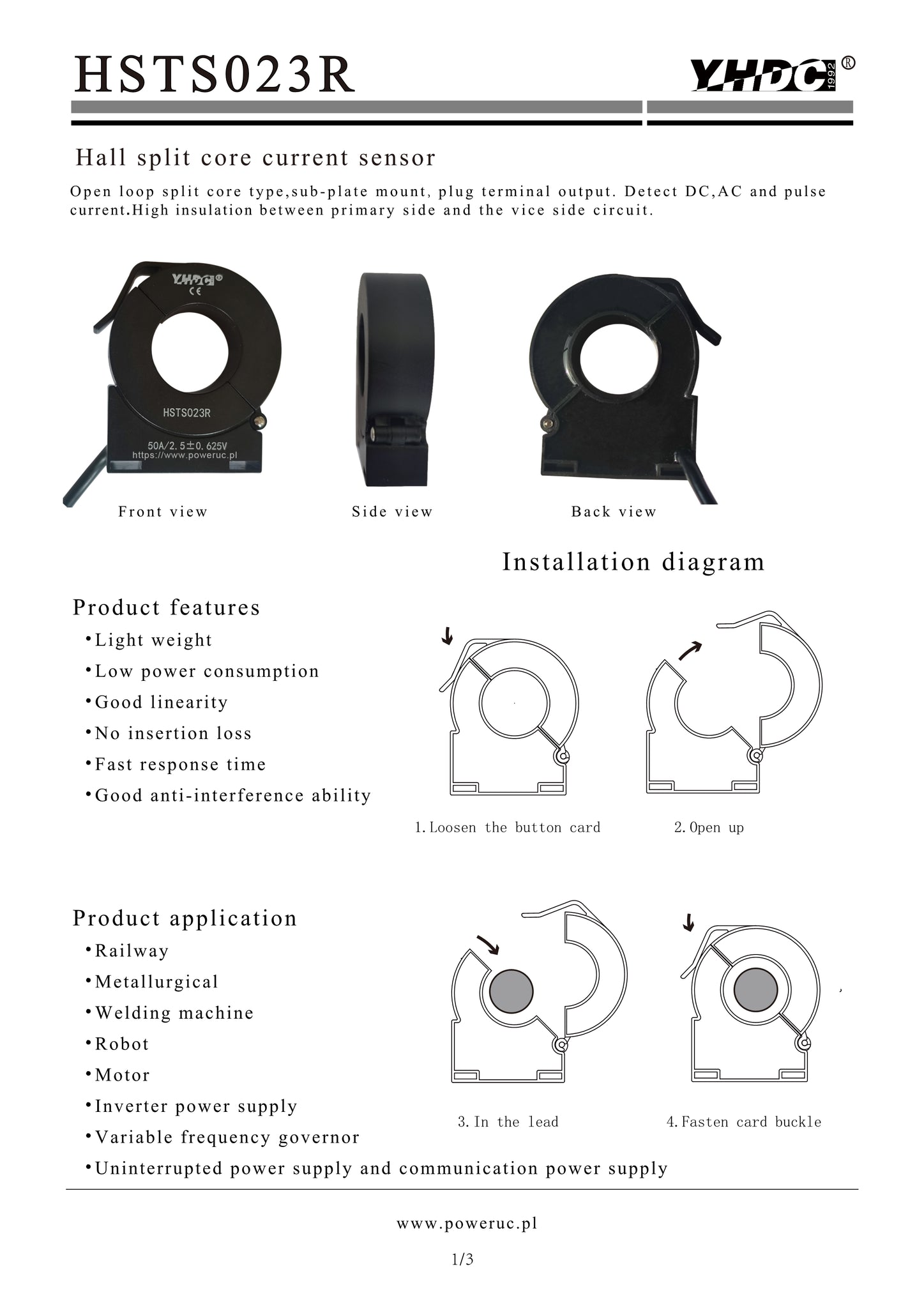 Split core current sensor HSTS016L Rated input ±10A ±20A ±30A ±50A ±100A ±150A ±200A Rated output 1.65V±0.625V/+3.3V And 2.5V±0.625V/+5V