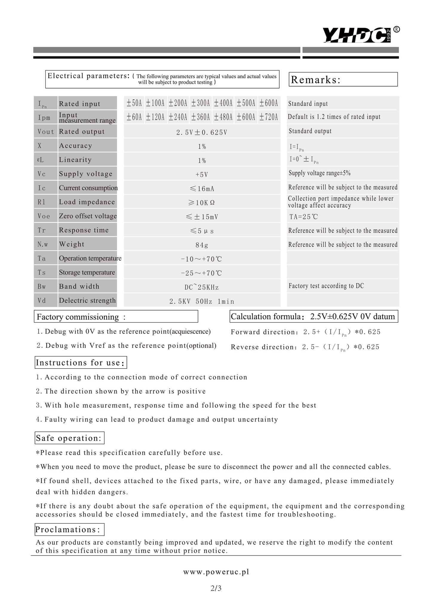 Split core current sensor HSTS023R Rated input ±50A ±100A ±200A ±300A ±400A ±500A ±600A Rated output 2.5V±0.625V