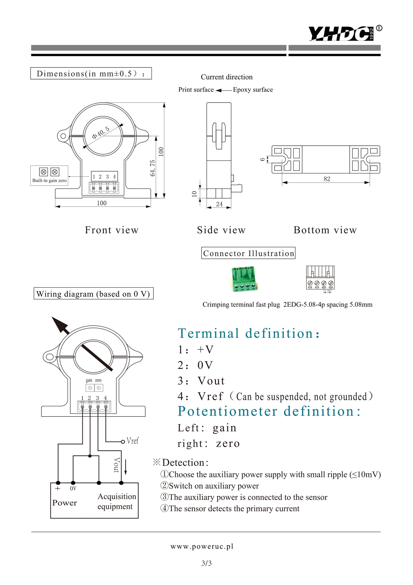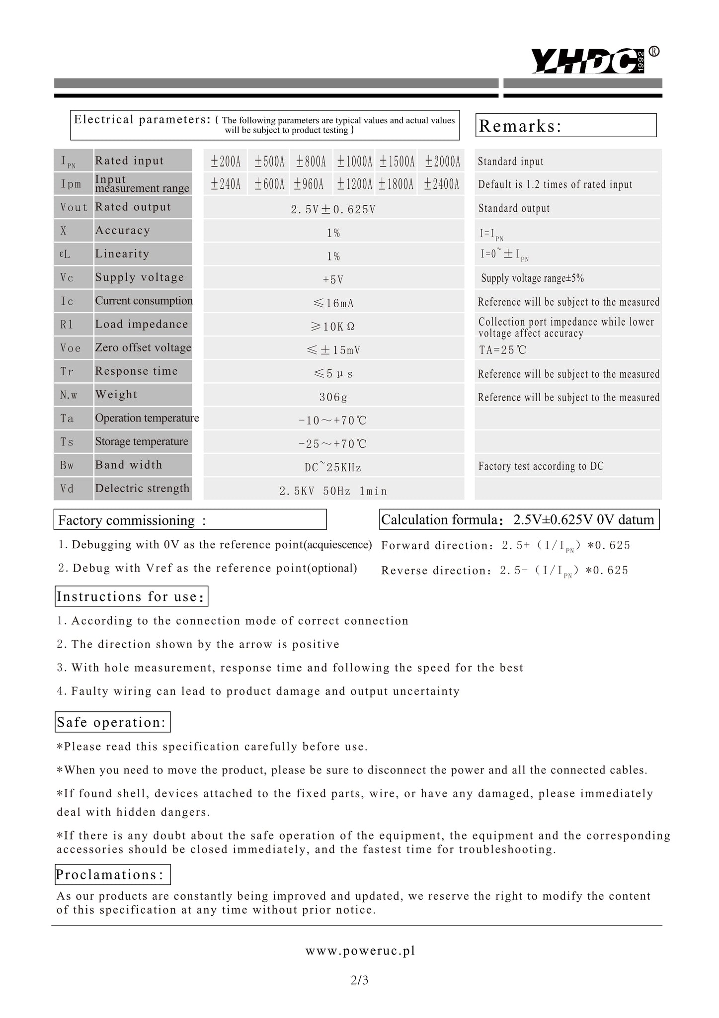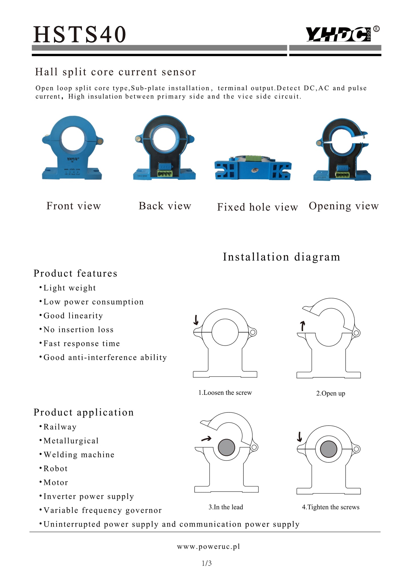 Split core current sensor HSTS40 Rated input ±200A ±500A ±800A ±1000A ±1500A ±2000A Rated output 2.5V±0.625V