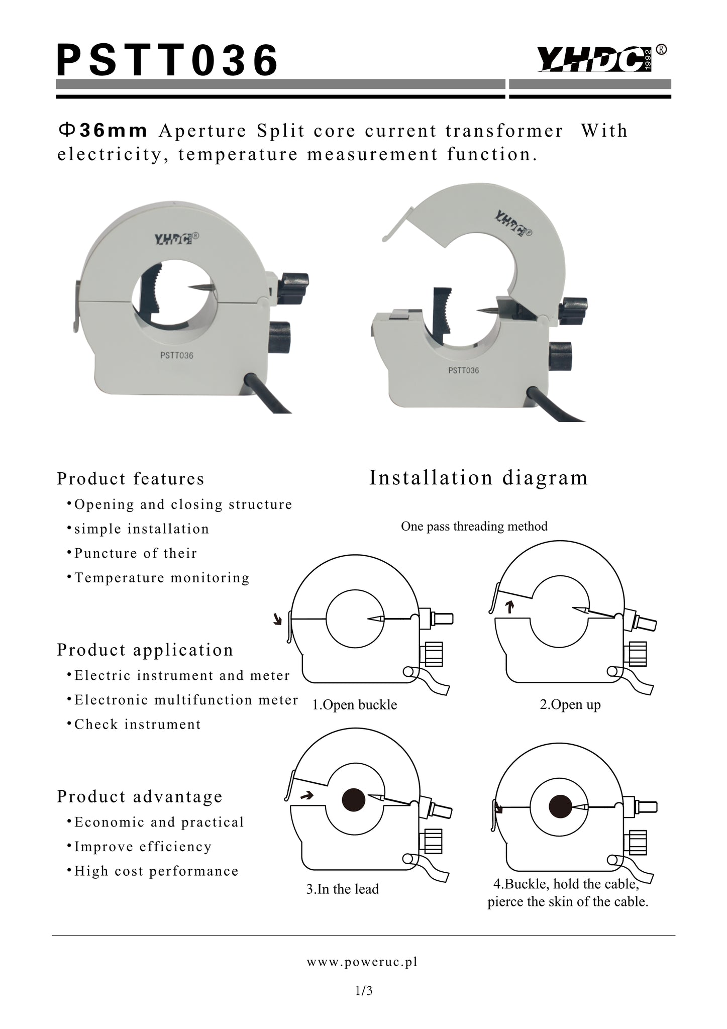 Puncture current transformer PSTT036 Rated input 100A 200A 300A 400A 500A 600A Rated output 0.1A