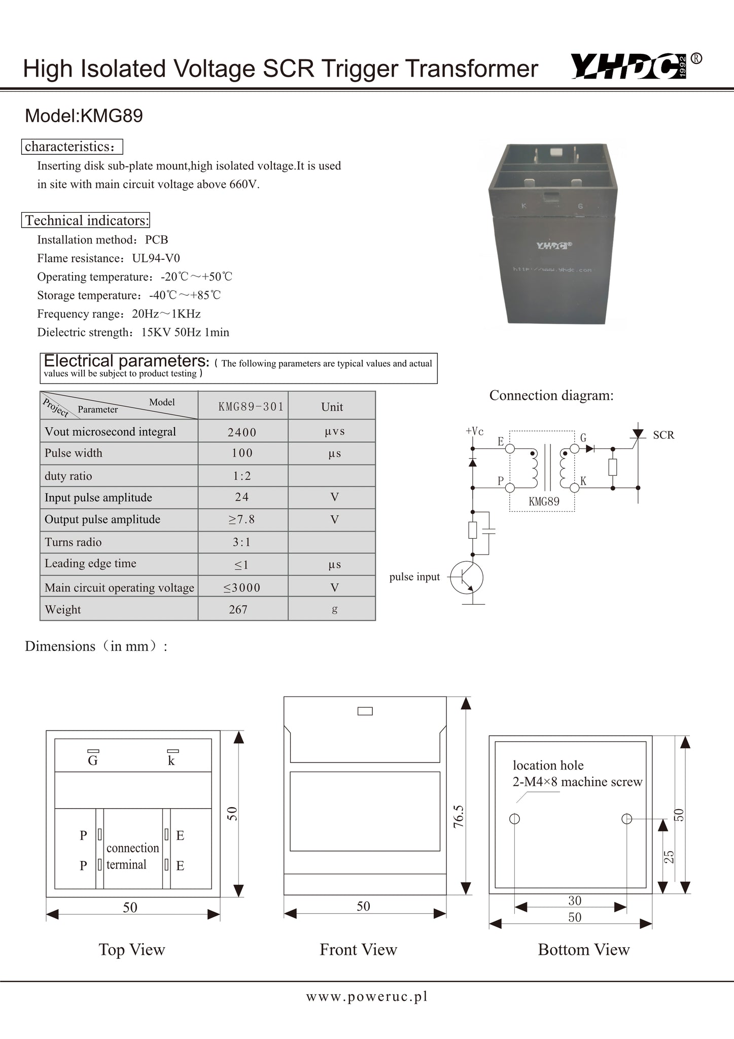 High Isolated Voltage SCR Trigger Transformer KMG89 Vout microsecond integral 2400μvs