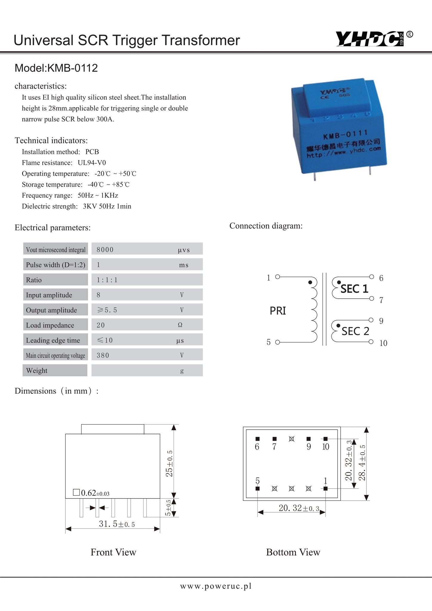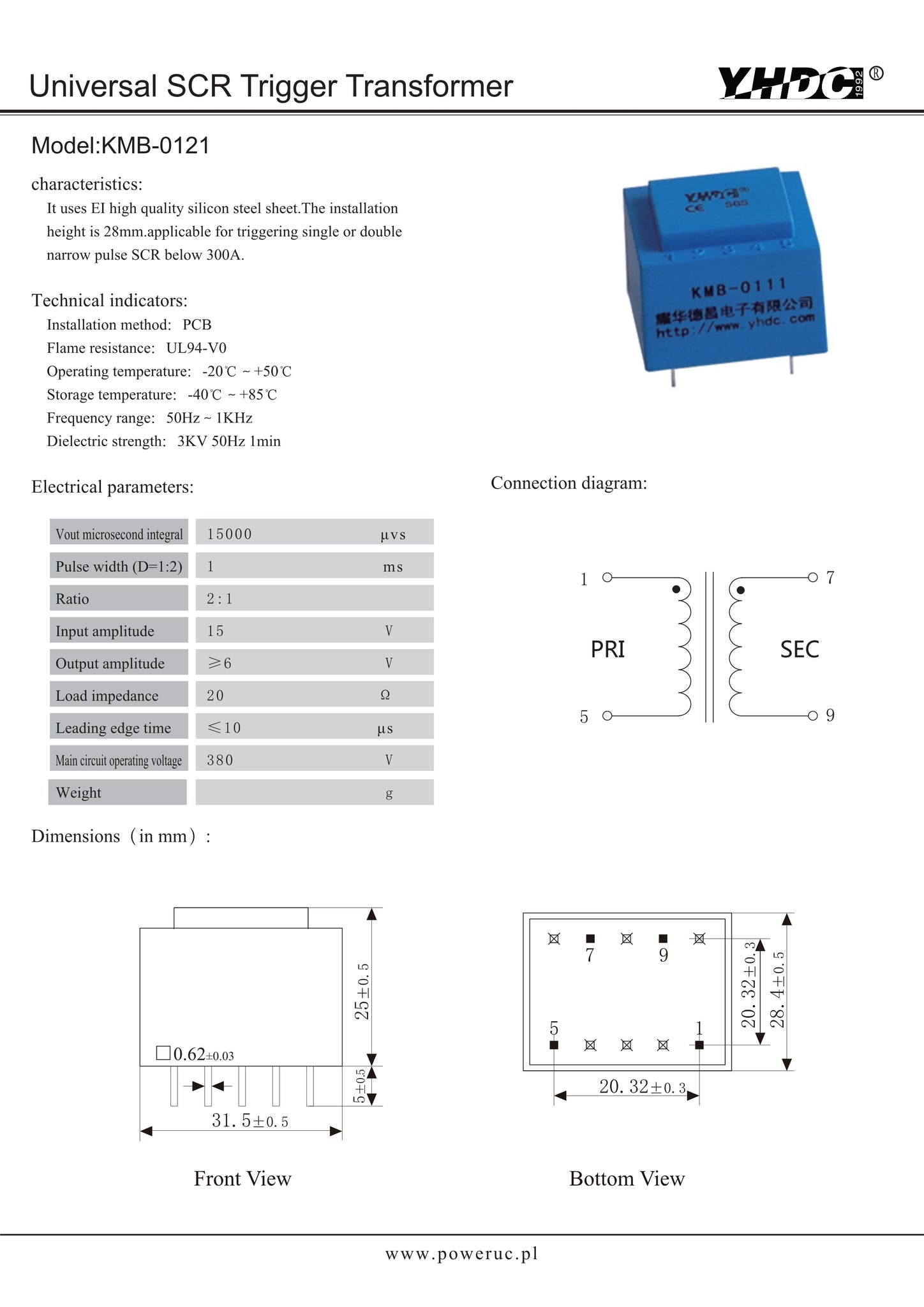 Universal SCR Trigger Transformer KMB-01 Vout microsecond integral 8000/15000/24000μvs Input amplitude 8/15/24V