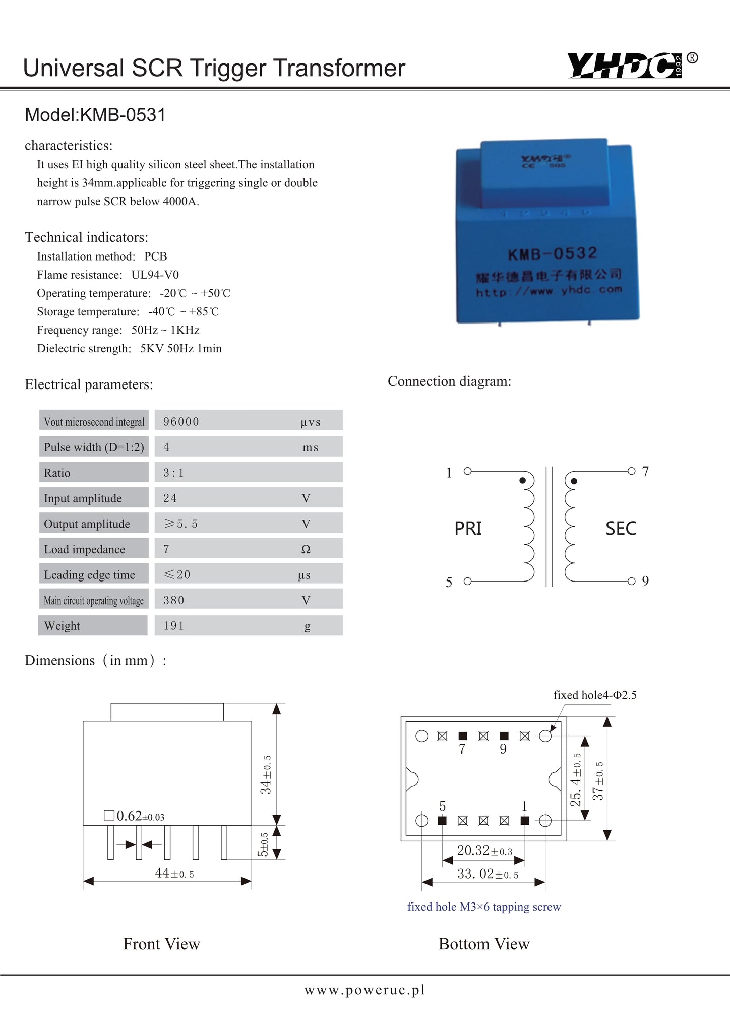 It uses EI high quality silicon steel sheet. The installation height is 30.5mm. Applicable for trigger single or double narrow pulse SCR below 100A.