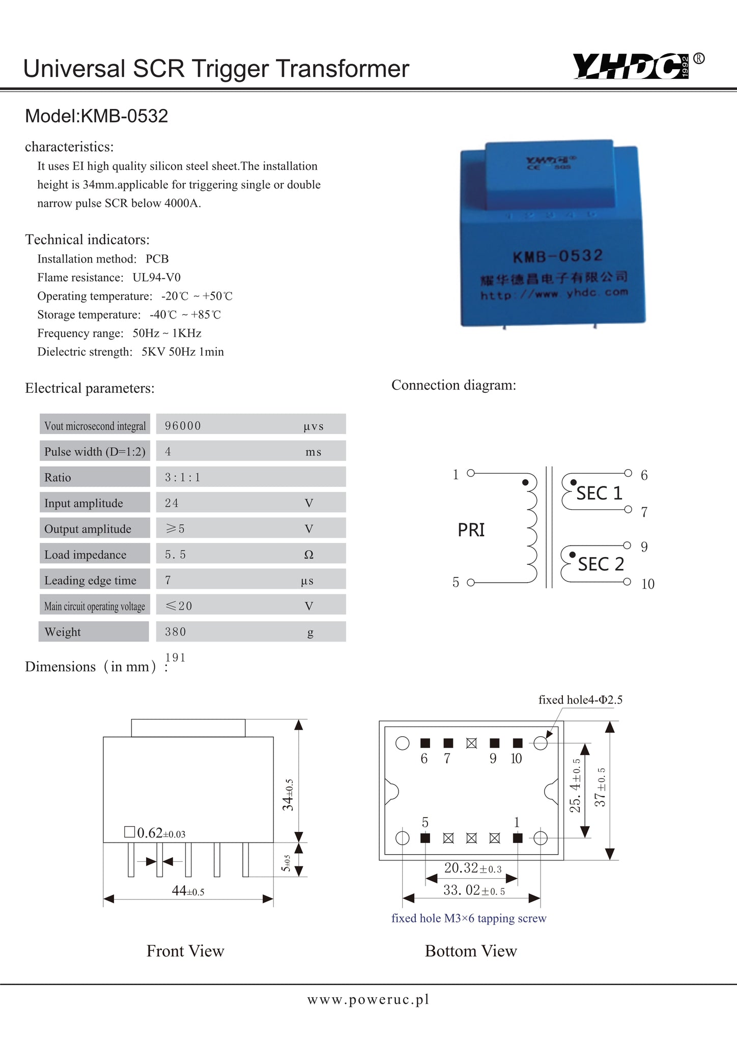 Universal SCR Trigger Transformer KMB-05 Vout microsecond integral 32000/60000/96000μvs
