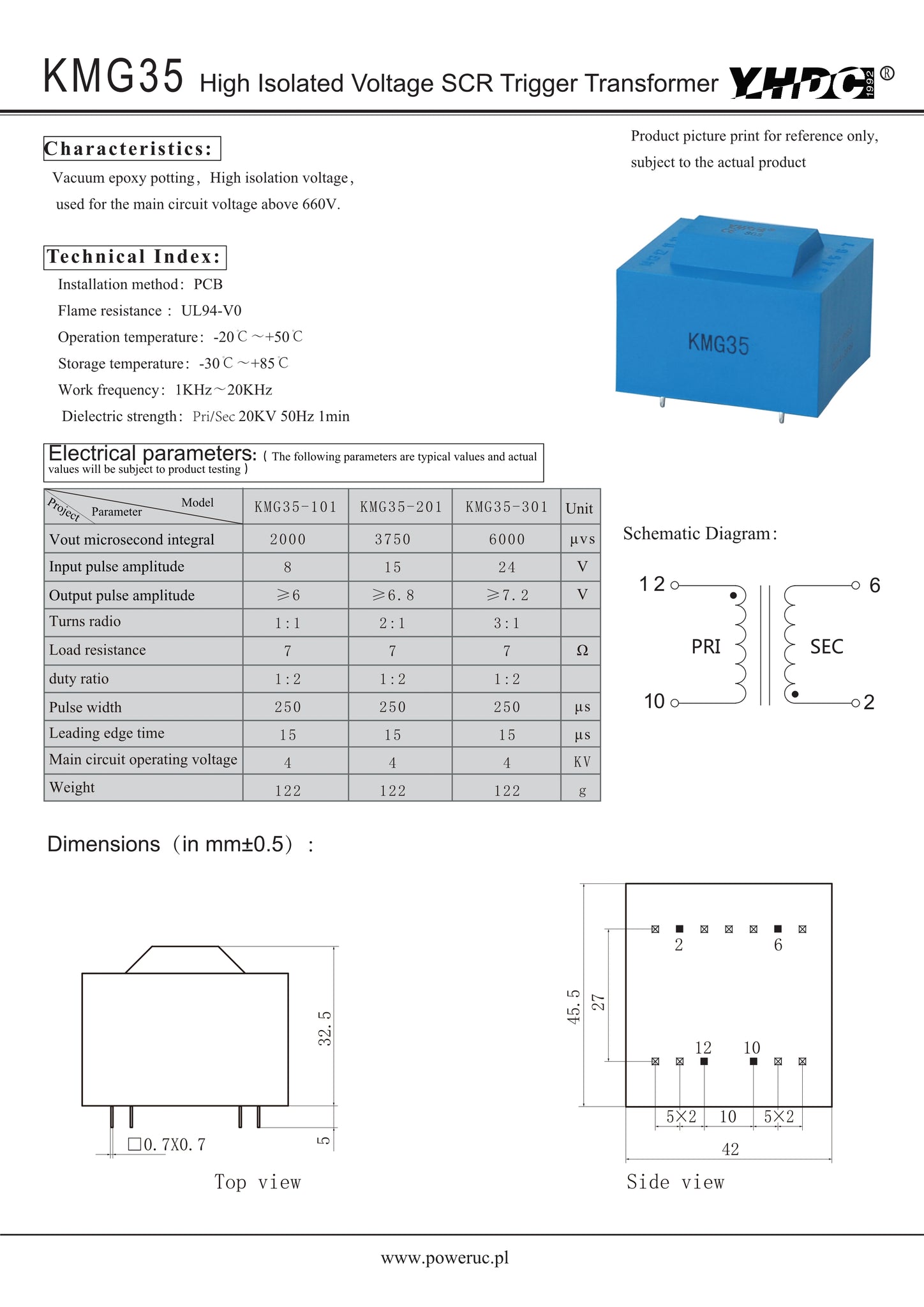 Universal SCR Trigger Transformer KMG35 Vout microsecond integral 2000/3750/6000μvs