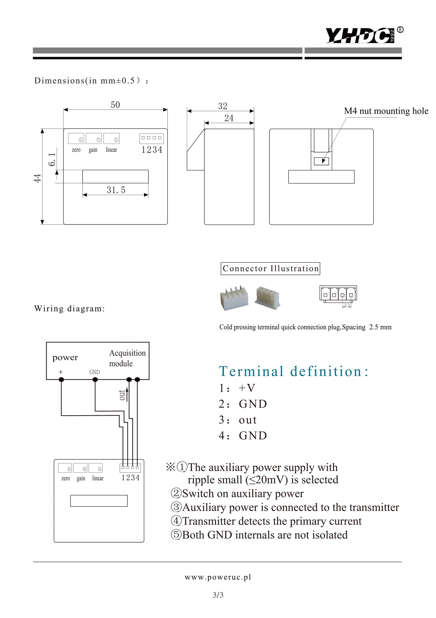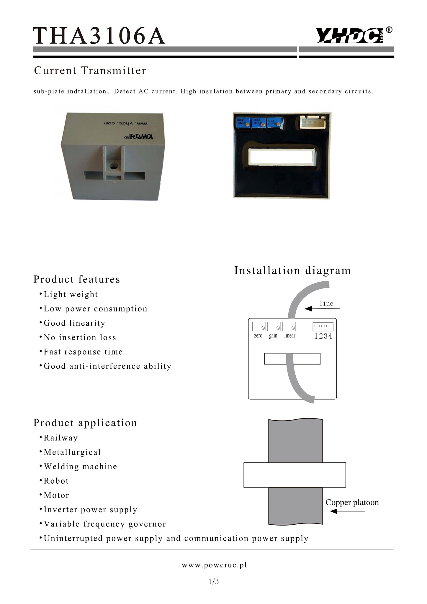 AC current transducer THA3106A Rated input 50A/100A/200A/400A/500A Rated output 0-20mA ;4-20mA ;0-5V ;1-5V ;0-10V