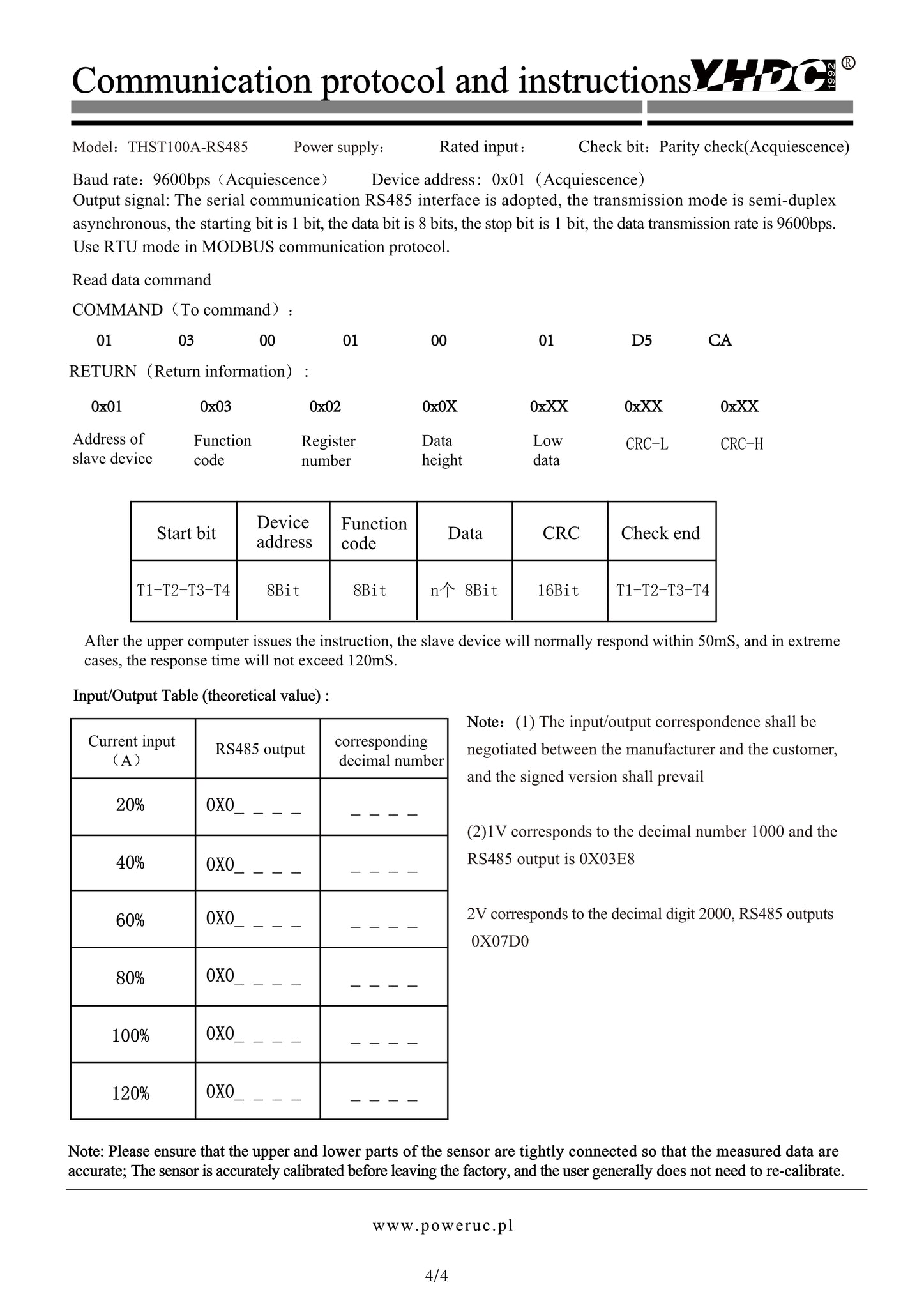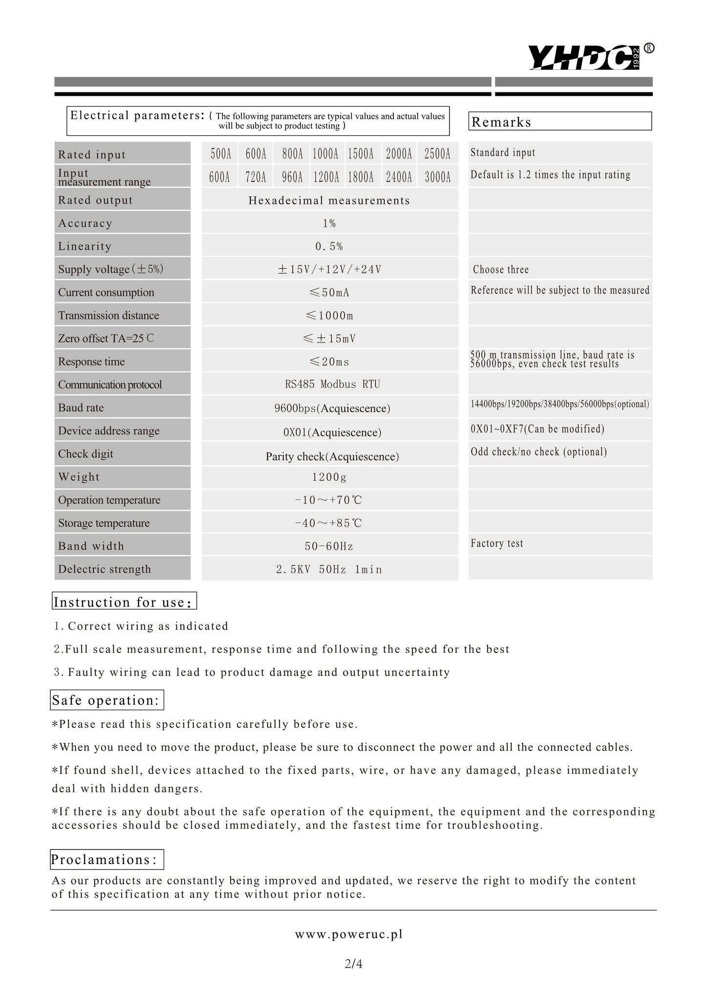 AC Digital output current transducer table THST100A-RS485 rated input 500A 800A 1000A 1200A 1500A 1800A 2000A 2500A power supply  +12V +24V ±15V - PowerUC