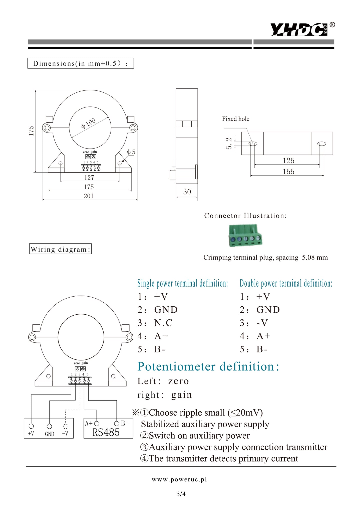 Circle plug terminal outputsub-plate indtallation;The faulty wiring can lead to product damage:The output is linear with primary test current,The output signal can be connected to a