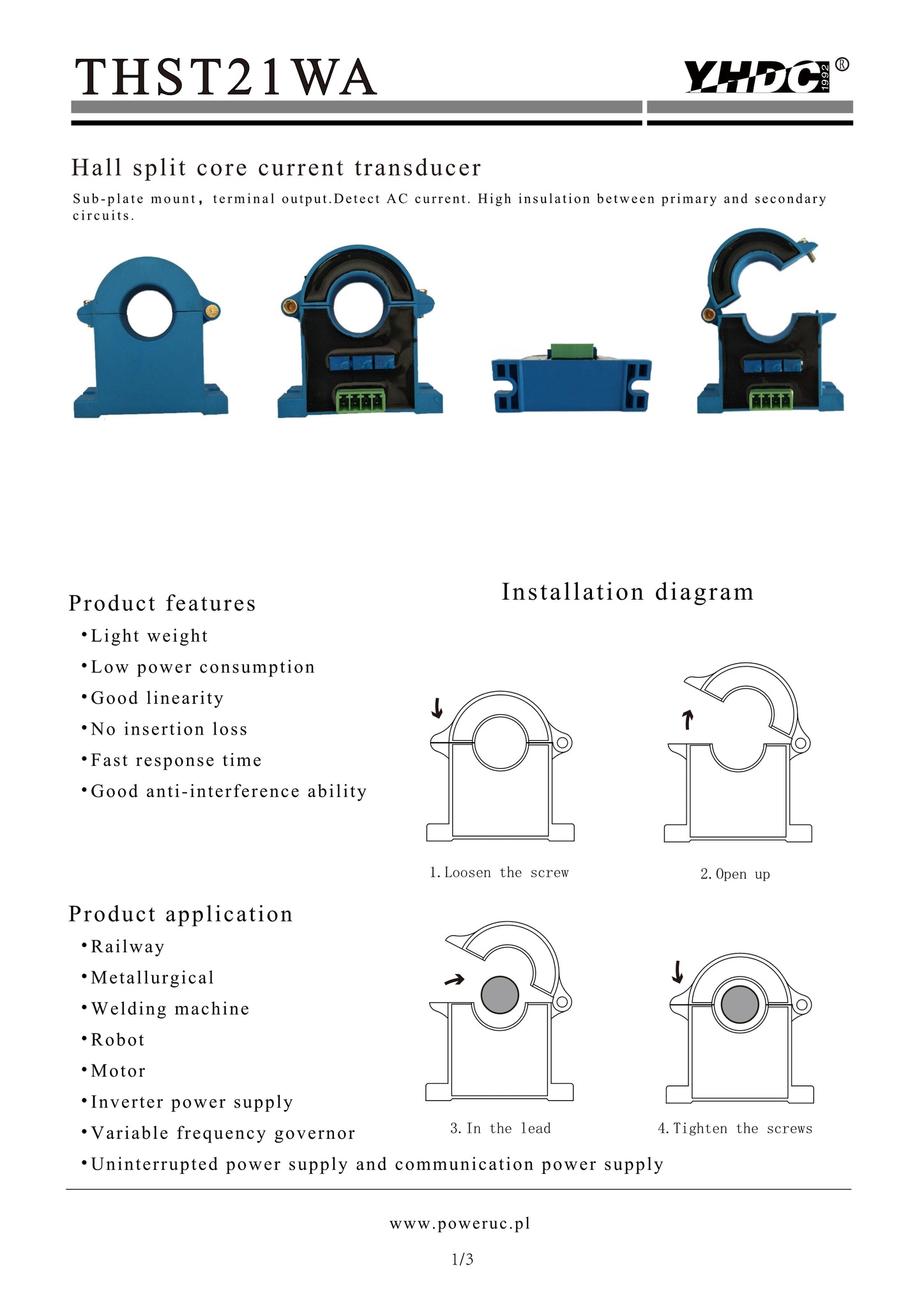 Split core AC current transducer THST21WA Rated input 50A 100A 200A 300A 400A 500A Rated output 0-20mA;4-20mA ;0-5V;1-5V;0-10V