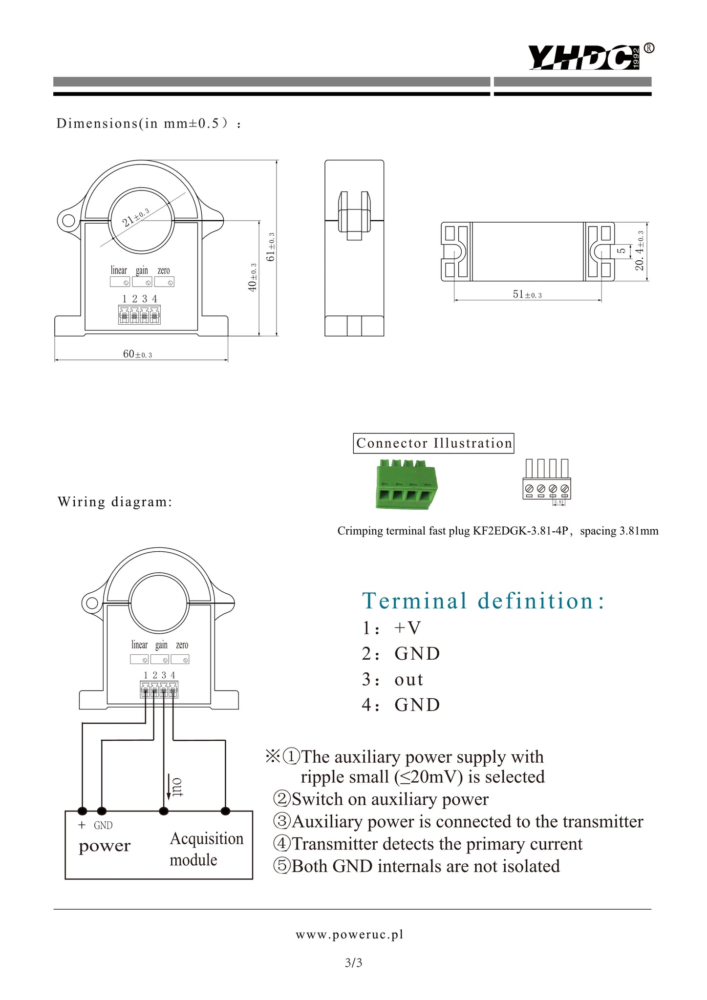 Circle plug terminal output,sub-plate mounting type;The faulty wiring can lead to product damage:The output is linear with primary test current,and the output signal can be directly enter automatic control equipment or PLC port.