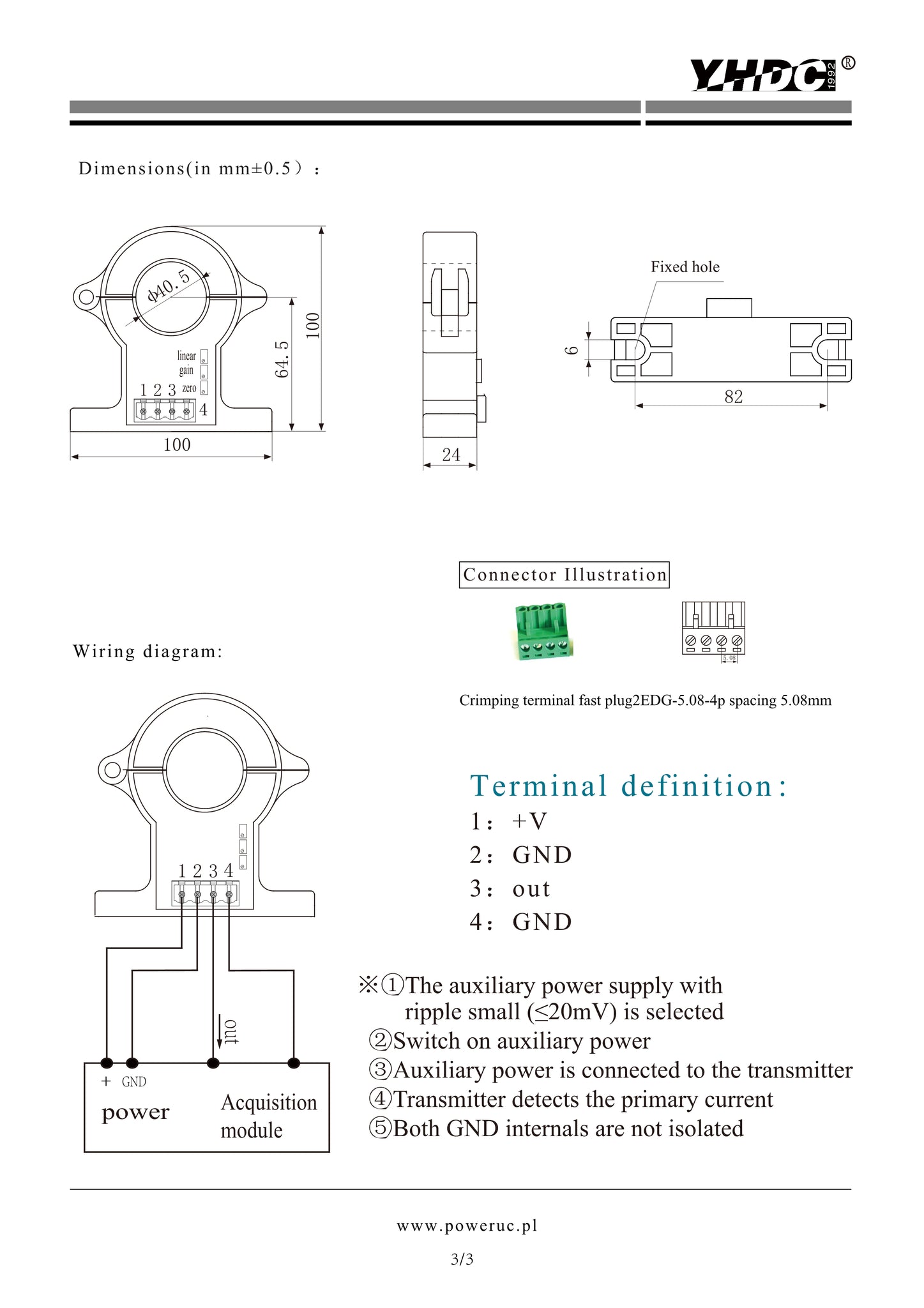 Circle plug terminal output, sub-plate mounting type;The faulty wiring can lead to product damage,The output is linear with primary test current,and the output signal can be directly