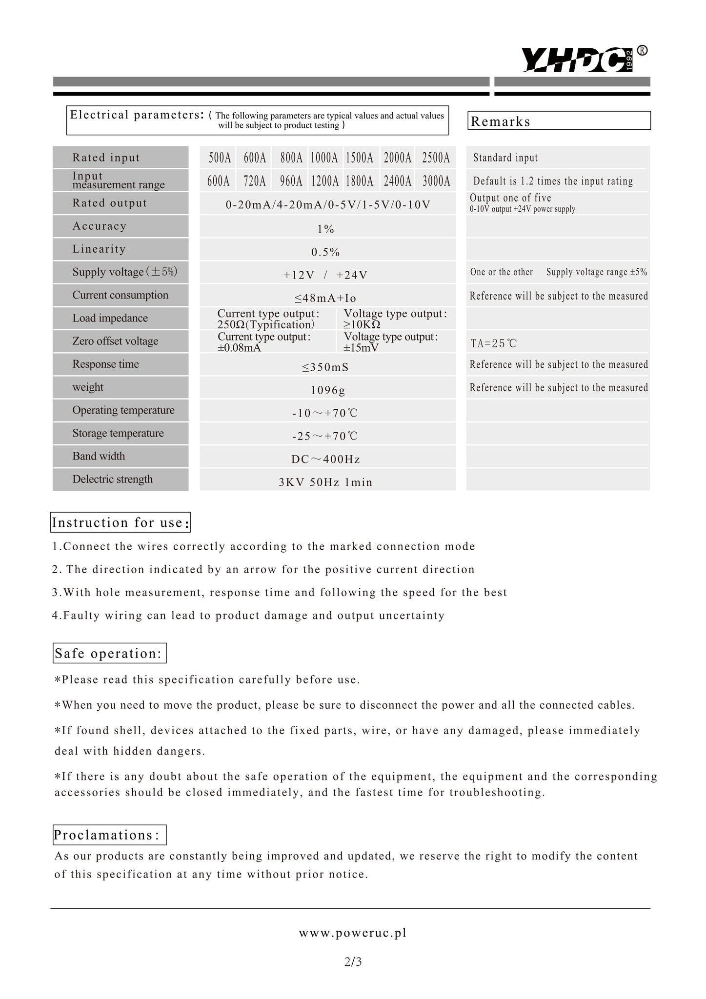 DC current transducer THST100D Rated input 500A 600A 800A 1000A 1500A 2000A 2500A Rated output 0-20mA;4-20mA ;0-5V;1-5V;0-10V