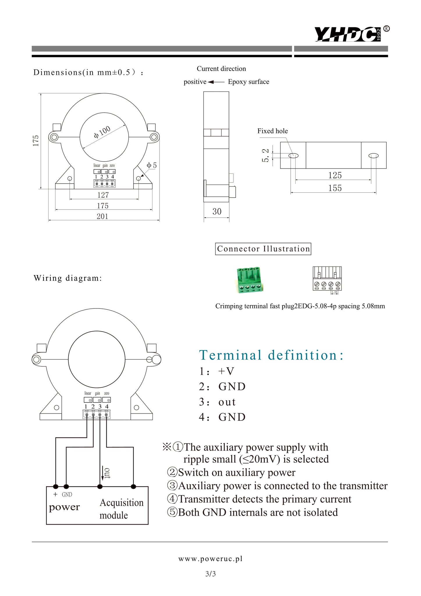 Circle plug terminal outputsub-plate mounting type;The faulty wiring can lead to product damage,Please according to direction of arrow to thread when testing DC current,reverse