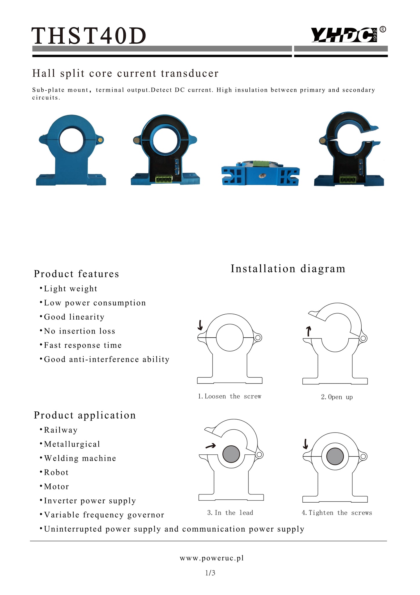 DC current transducer THST40D Rated input 300A 500A 800A 1000A 1200A 1500A 2000A Rated output 0-20mA;4-20mA ;0-5V;1-5V;0-10V