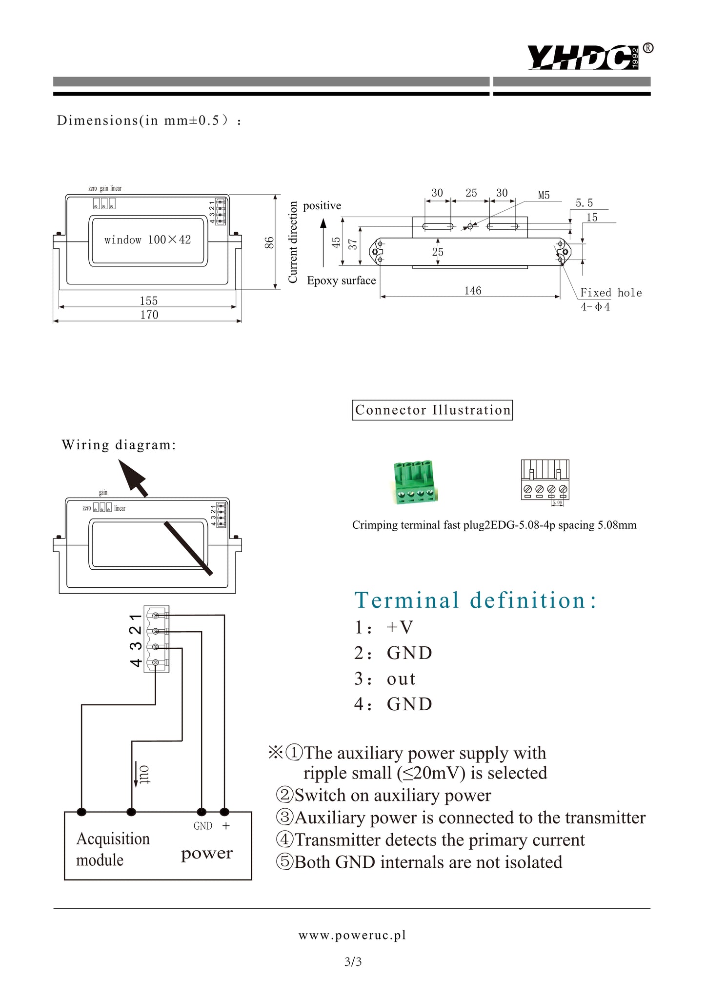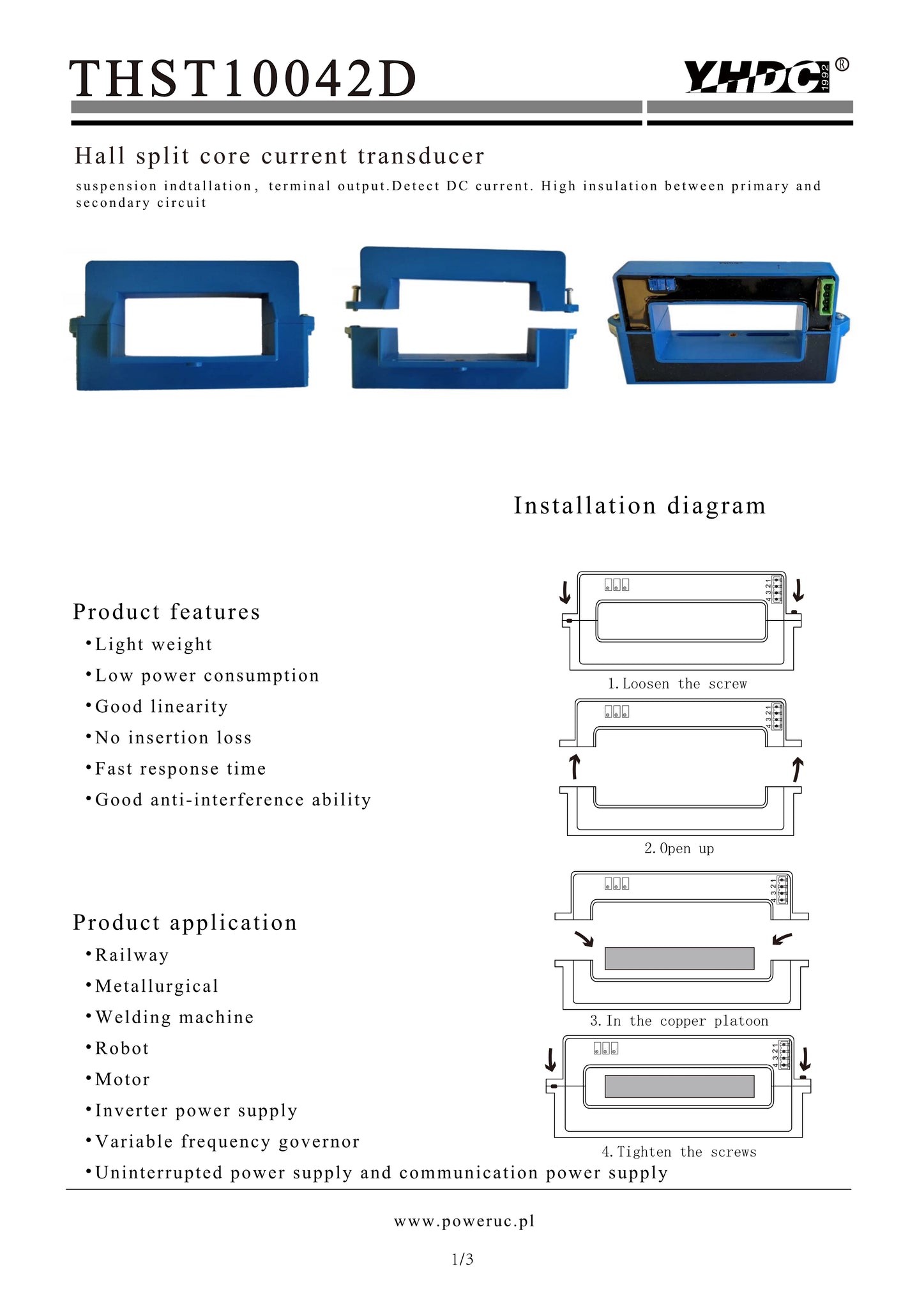 DC current transducer THST10042D Rated input 600A 800A 1000A 1200A 1400A 1600A 1800A 2000A Rated output 0-20mA;4-20mA ;0-5V;1-5V;0-10V - PowerUC