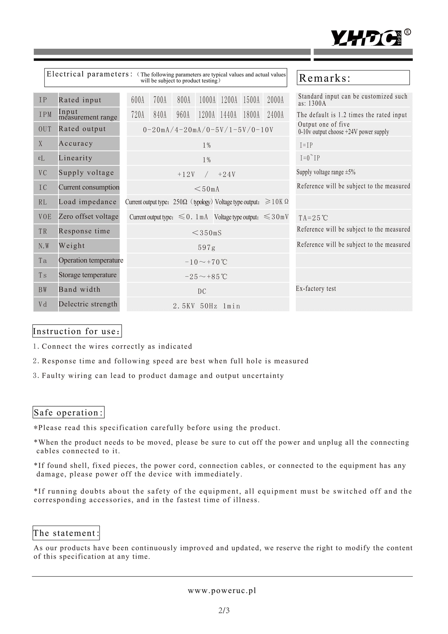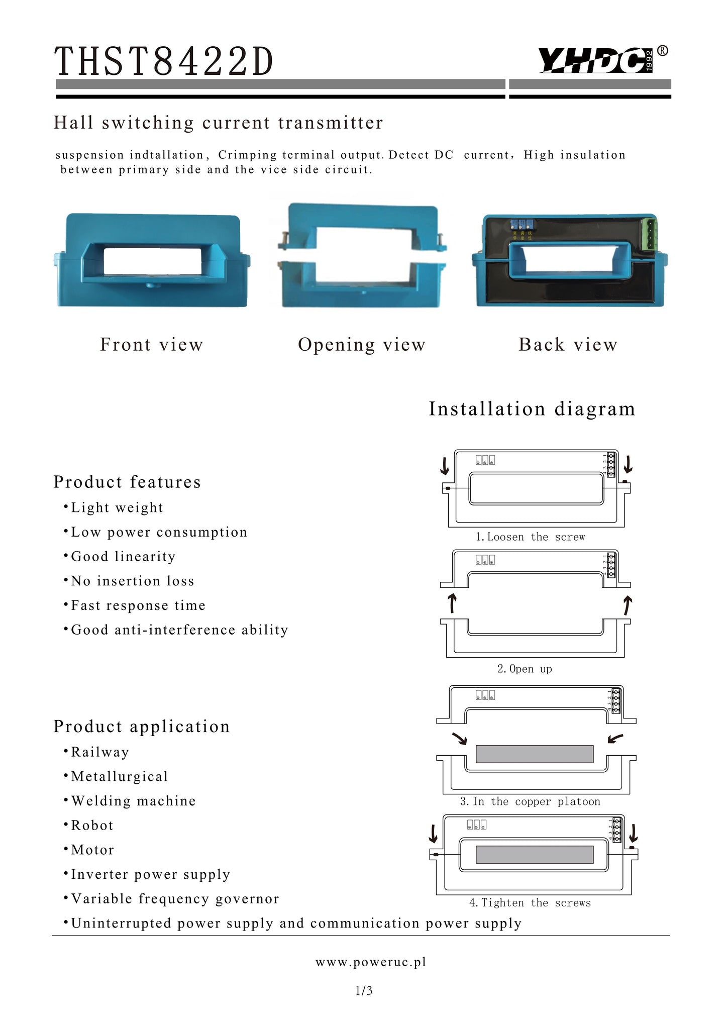 DC current transducer THST8422D Rated input 500A 700A 800A 1000A 1200A 1500A 2000A Rated output 0-20mA;4-20mA ;0-5V;1-5V;0-10V