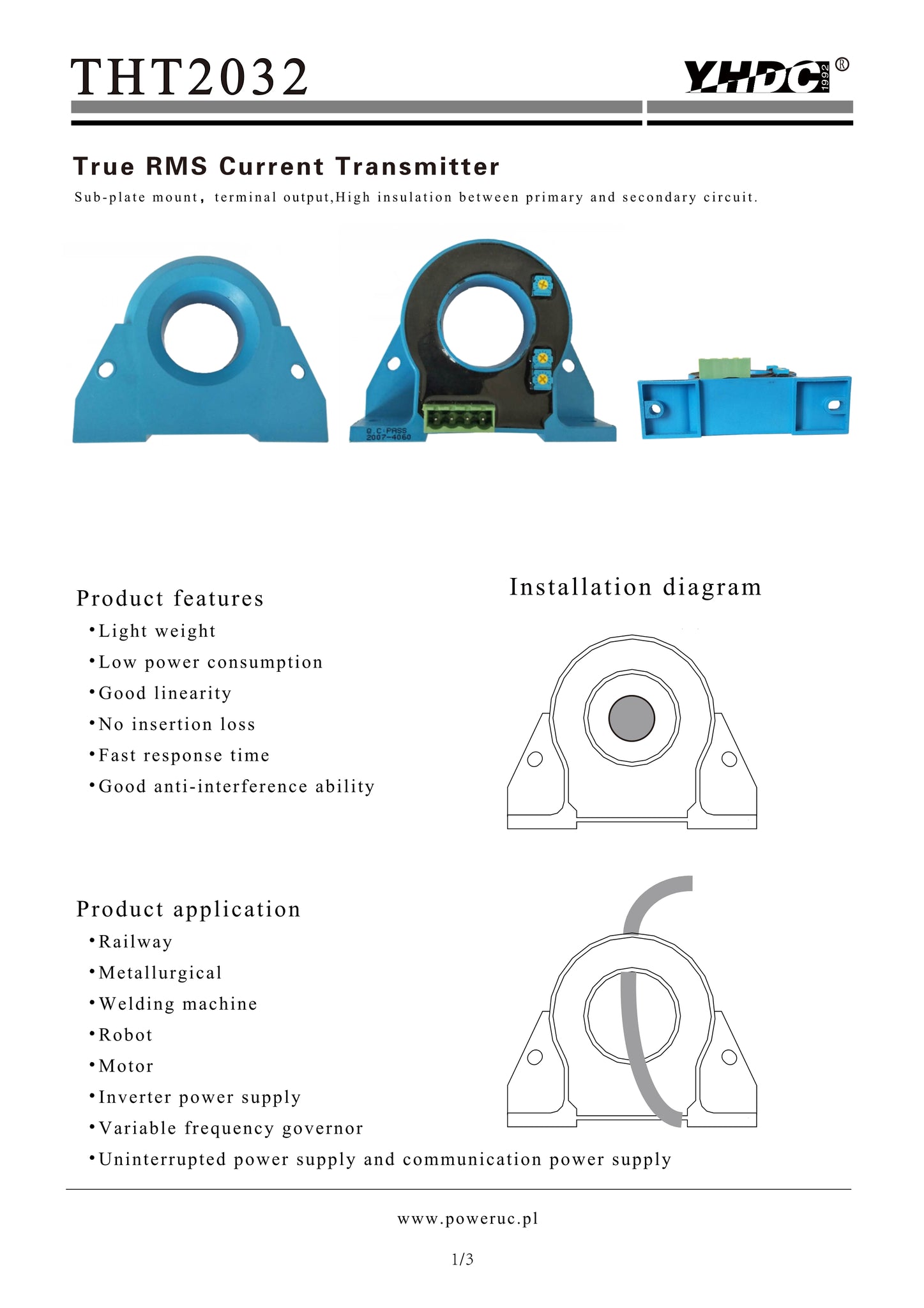 True RMS Current transmitter THT2032 Rated input 100A 200A 400A 600A Rated output 0-20mA;4-20mA ;0-5V;1-5V;0-10V