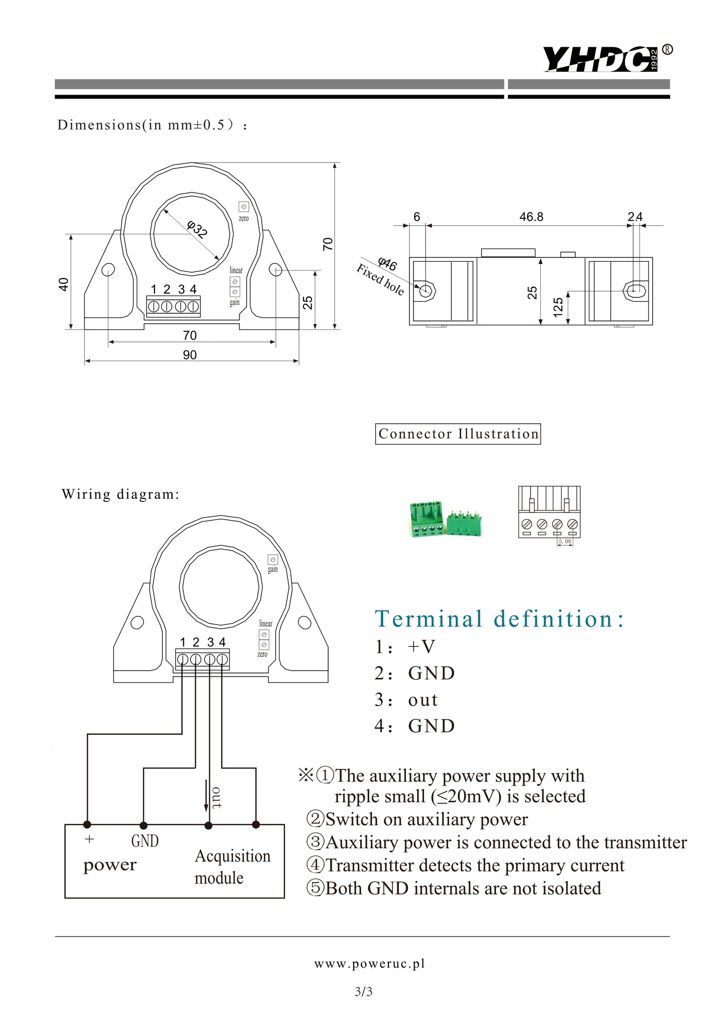 True RMS Current Transmitter THT2032 Rated input 100A 200A 400A 600A Rated output 0-20mA;4-20mA ;0-5V;1-5V;0-10V - PowerUC