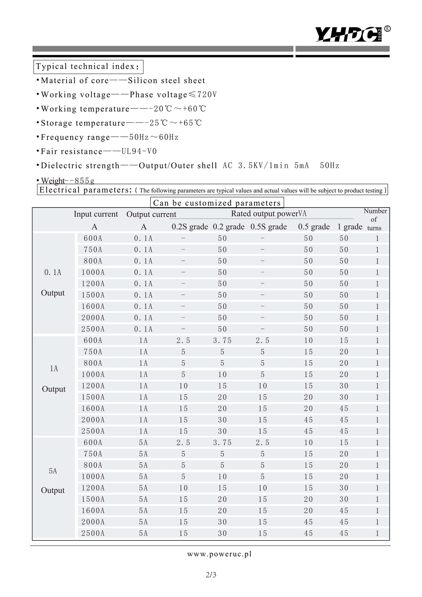 Dielectric strength: AC 3.5KV/1min 50Hz (secondary/shell)