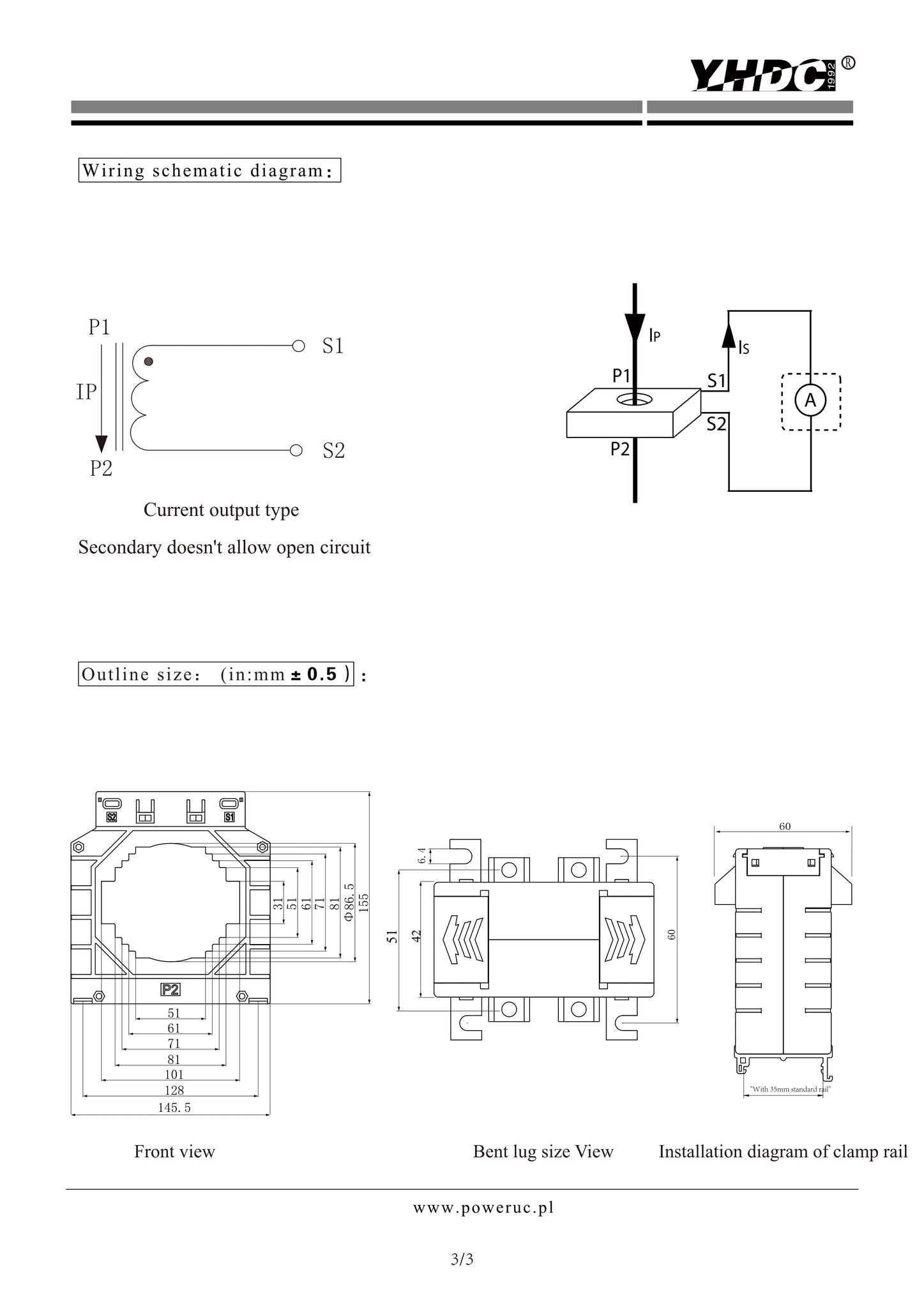 600A-2500A current transformer BCT145100 - 600A 750A 800A 1000A 1200A 1500A 1600A 2000A 2500A - 5A/1A/0.1A
