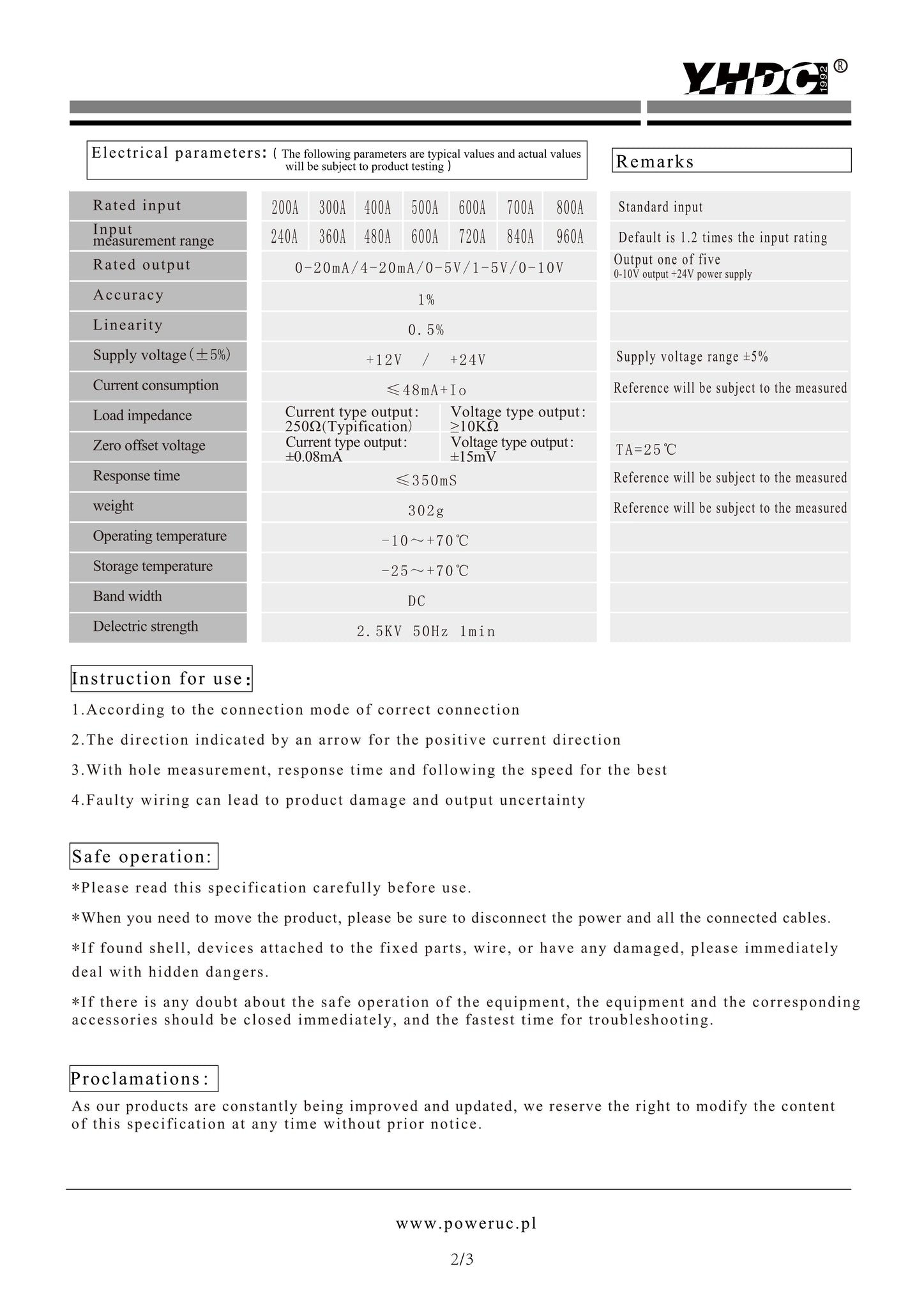 DC current transducer THA2035D Rated input 200A/400A/600A/800A Rated output 0-20mA;4-20mA ;0-5V;1-5V;0-10V