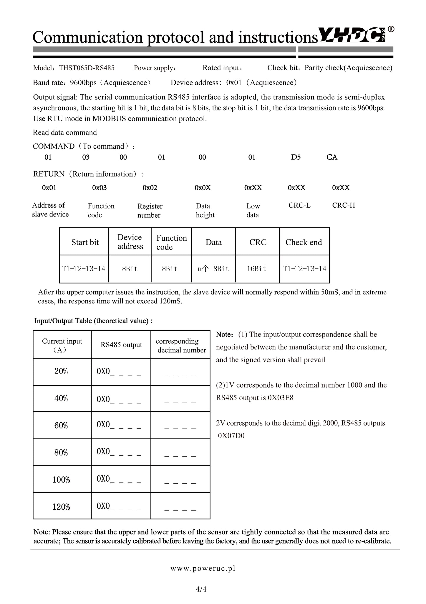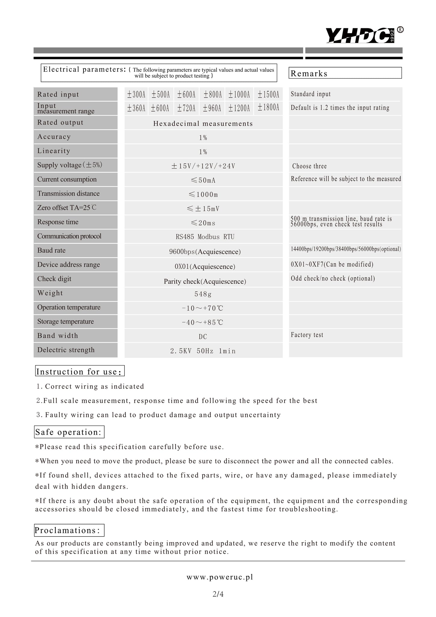 DC Digital output current transducer table THST065D-RS485 rated input 300A 500A 800A 1000A 1200A 1500A power supply +12V +24V ±15V - PowerUC