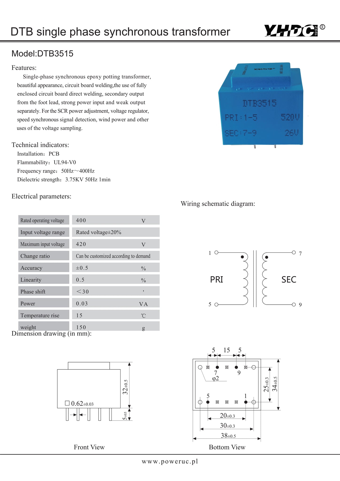DTB single phase synchronous transformer DTB3515 0.03VA 400V