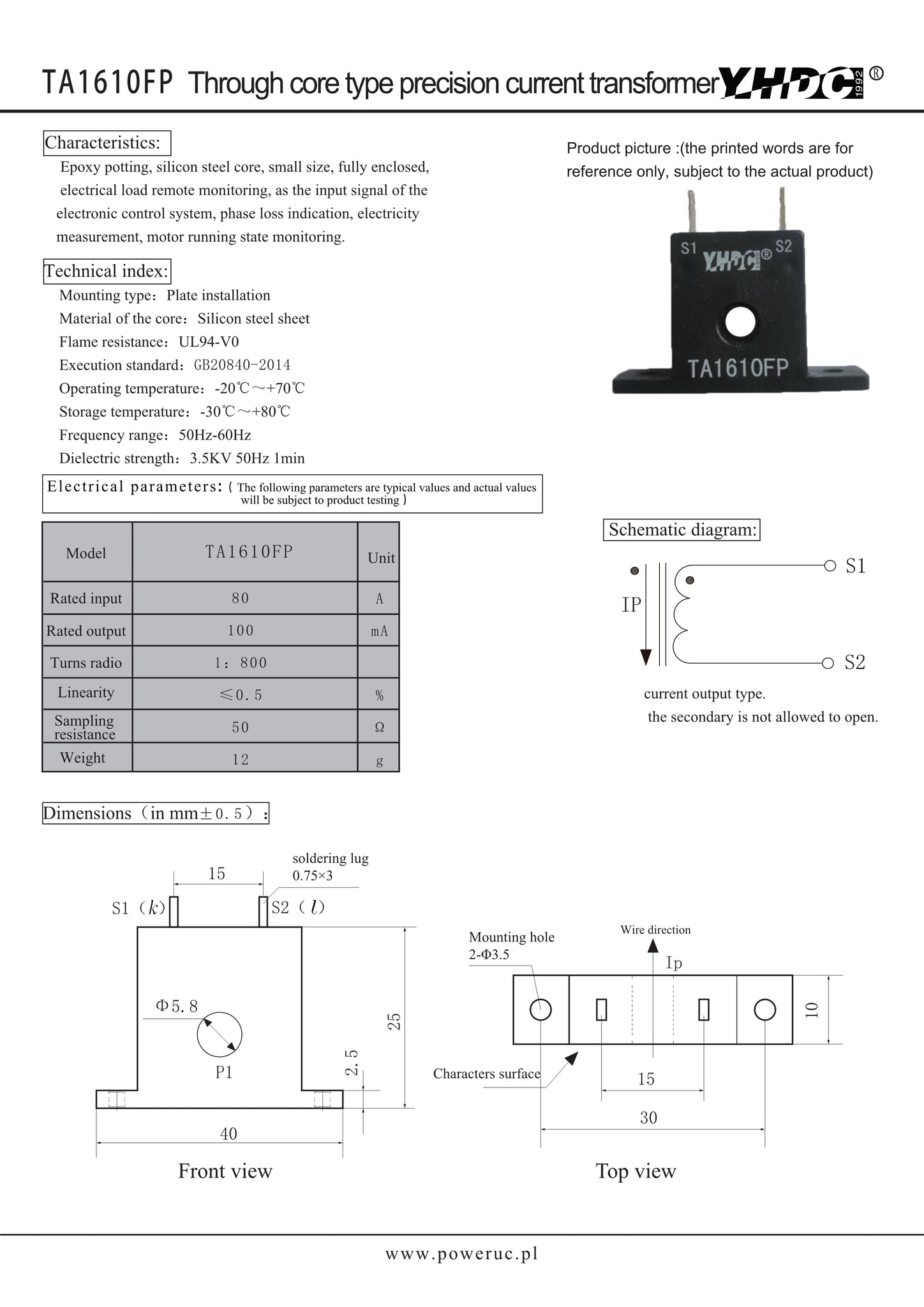 Electronic power general current transformer TA1610FP 80A 0.1A