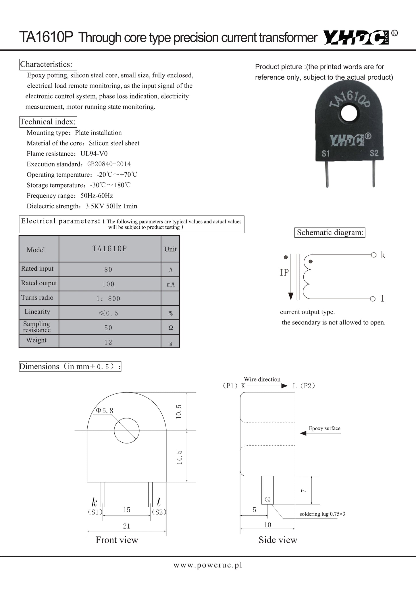 Through core type precision current transformer TA17L Rated input 0-10A;0-20A;0-30A Rated output 0-10mA
