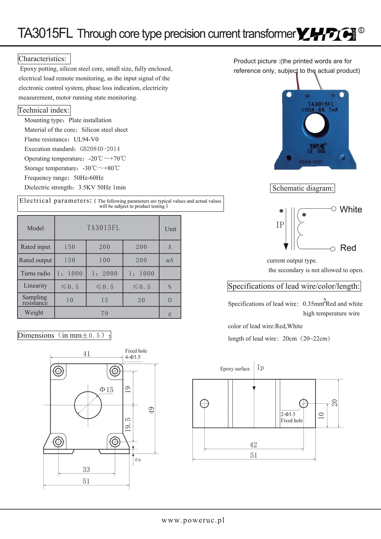 Electronic power general current transformer TA3015FL - 150A/150mA 200A/100mA 200A/200mA