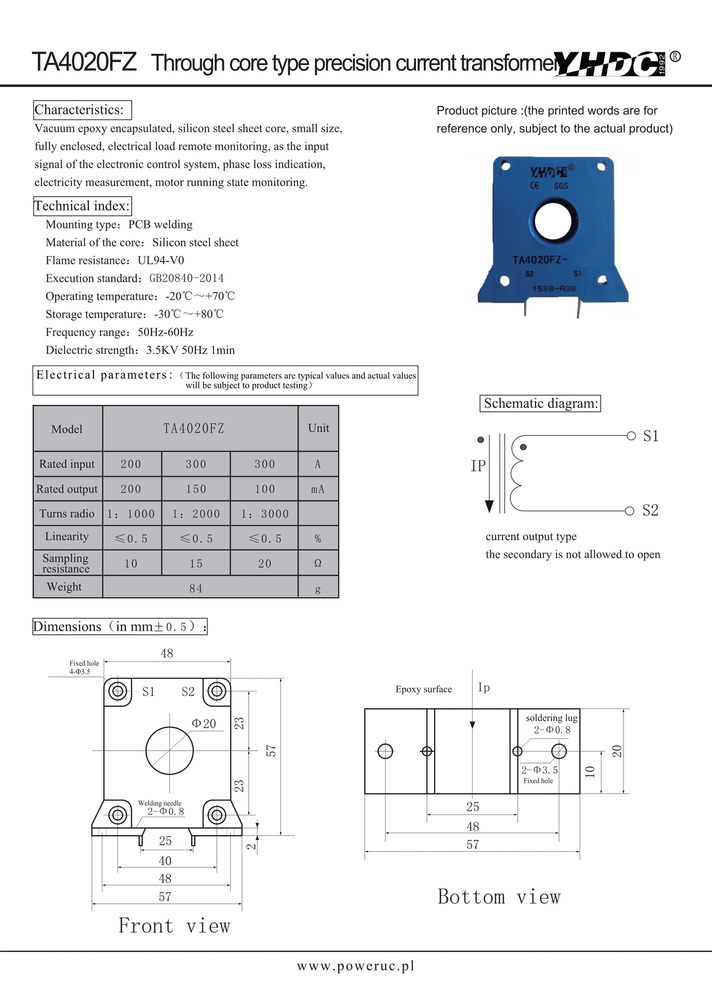 Electronic power general current transformer TA4020FZ - 200A/200mA 300A/150mA 300A/100mA