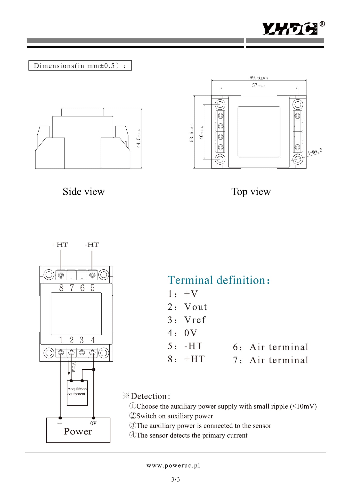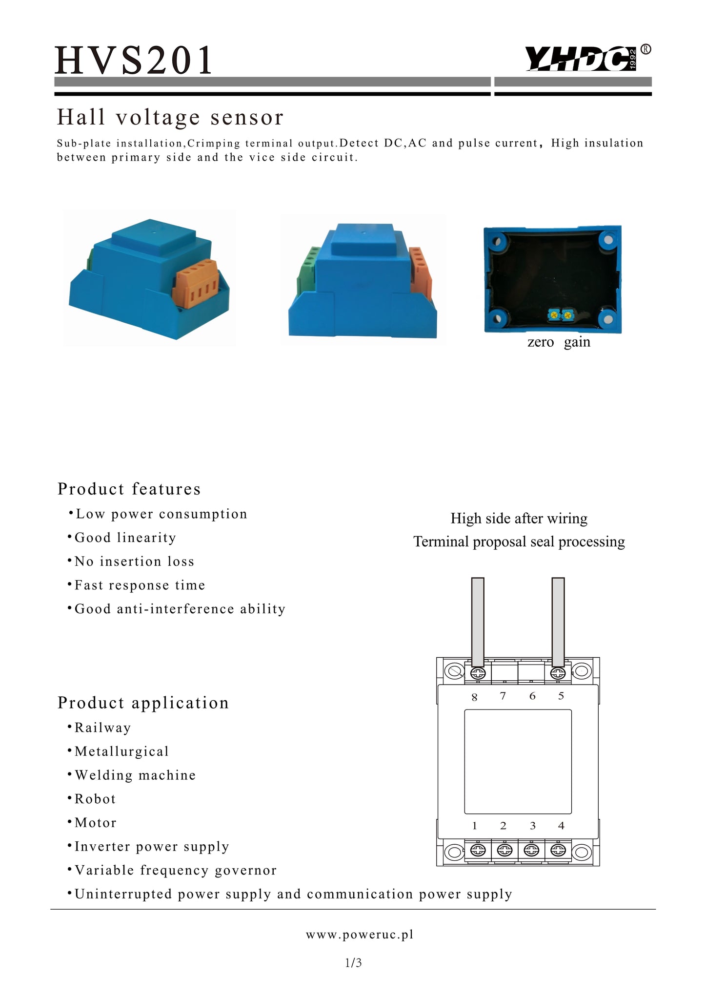 Voltage sensor HVS201 Rated input ±50V ±100V ±200V ±300V ±400V ±500V Rated output 2.5V±0.625V