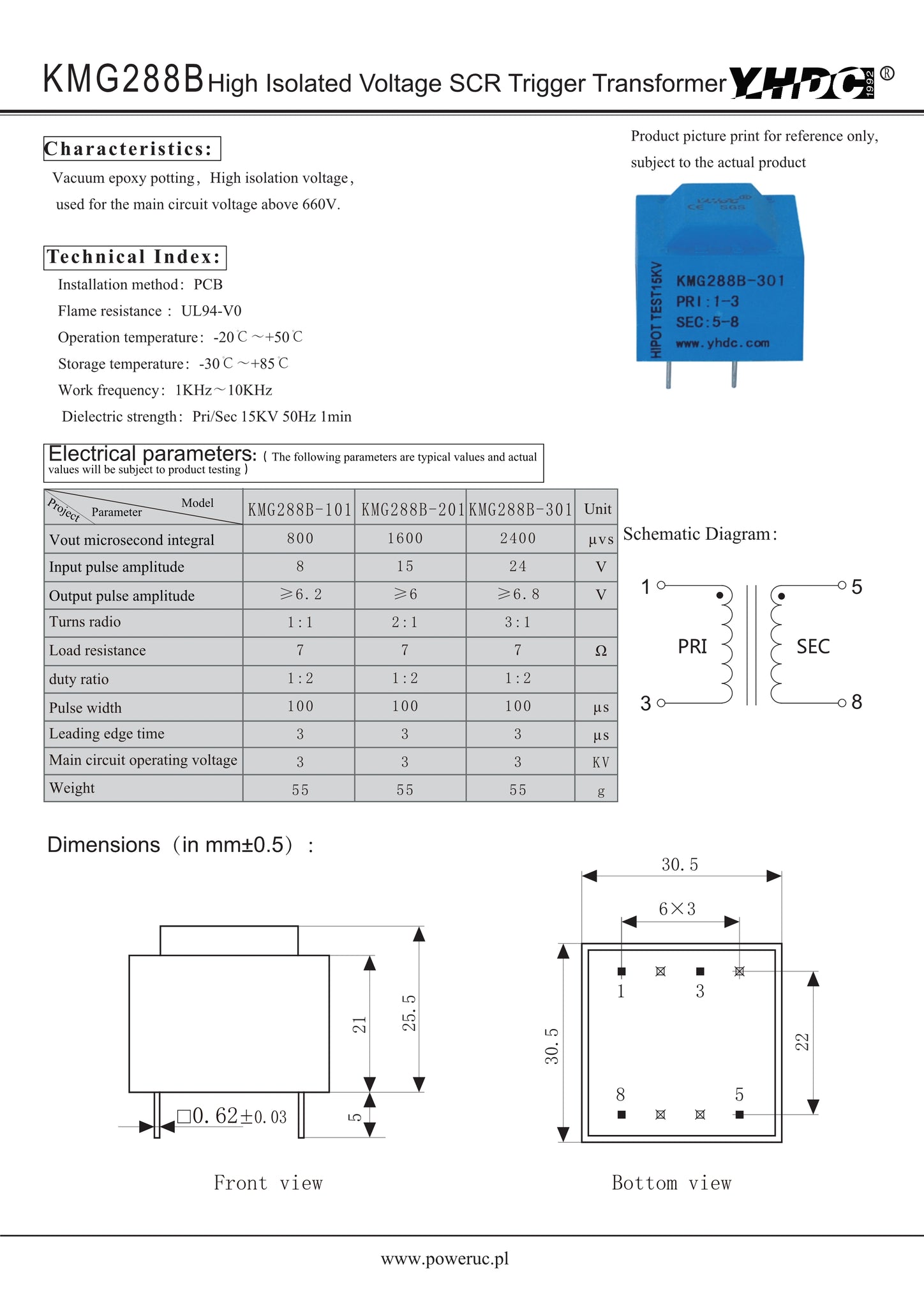 High Isolated Voltage SCR Trigger Transformer KMG288B Vout microsecond integral 800/1600/2400μvs