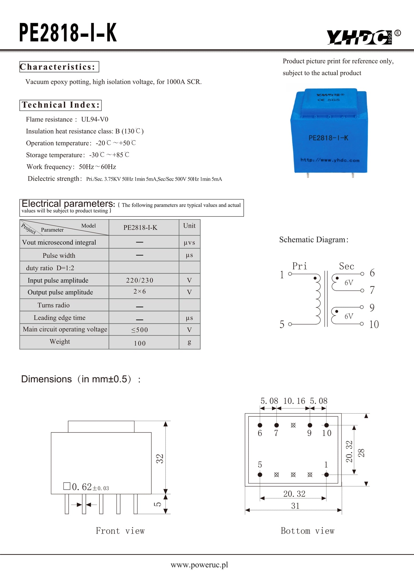 High Isolated Voltage SCR Trigger Transformer PE2818-I-K Primary operating voltage 220V/230V