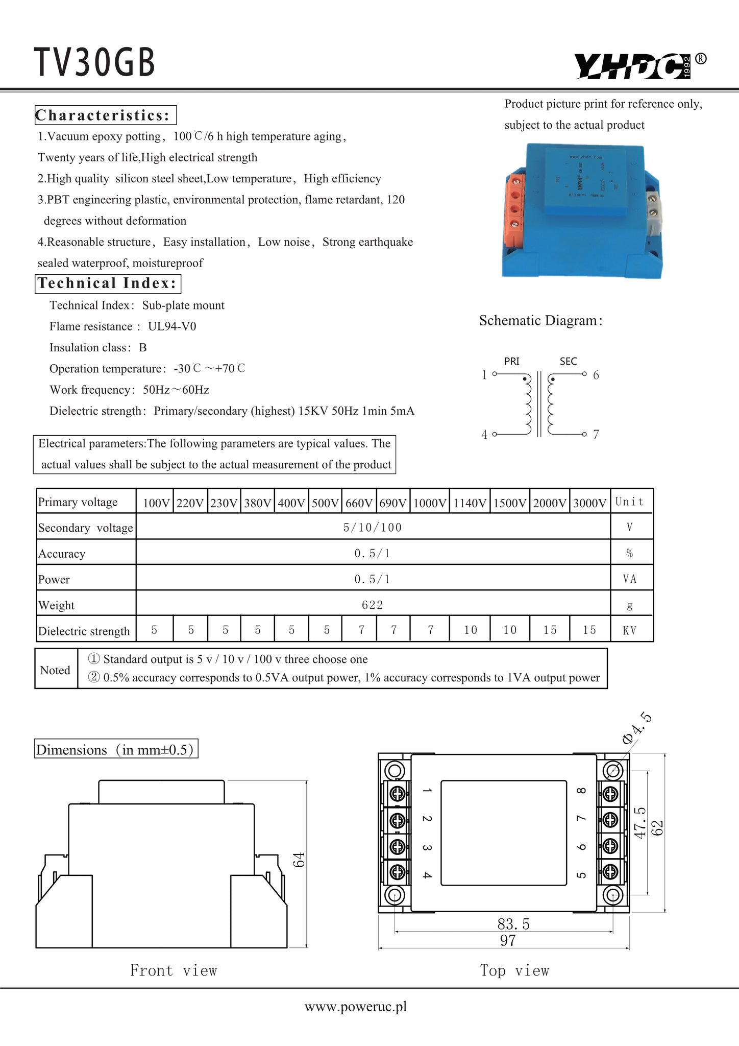 Mini voltage type current transformer TV30GB rated voltage 100V 220V 230V 400V 500V 660V 690V 1000V 1140V 1500V 2000V 3000V