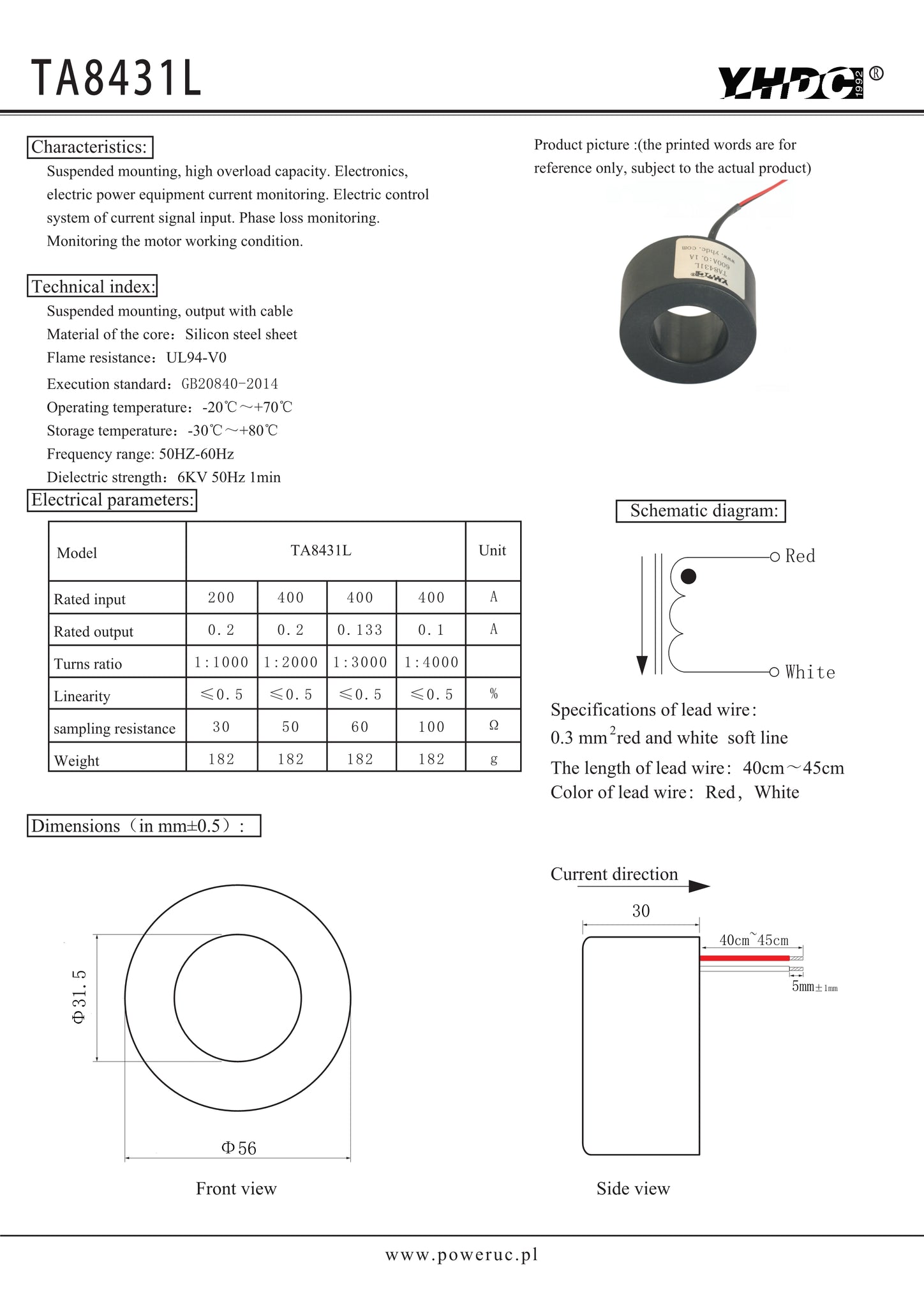 Power unit current transformer TA8431L Rated input 200A 400A Rated output 0-0.2A;0-0.133A;0-0.1A