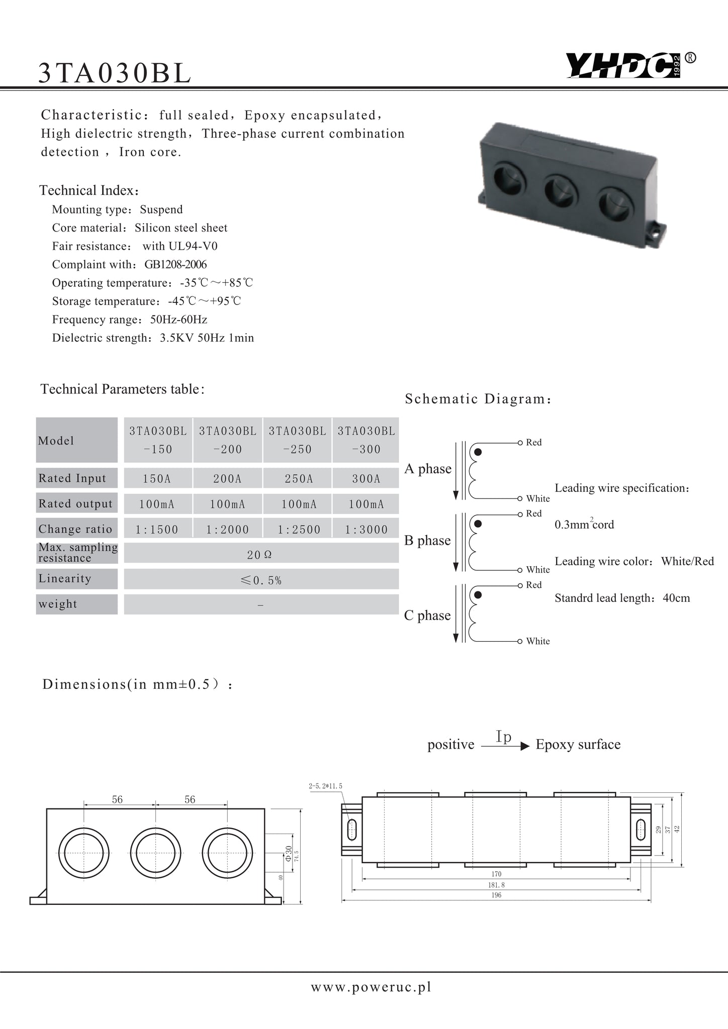 full sealed,epoxy encapsulated,high dielectric strength, three phase current combination detection,.